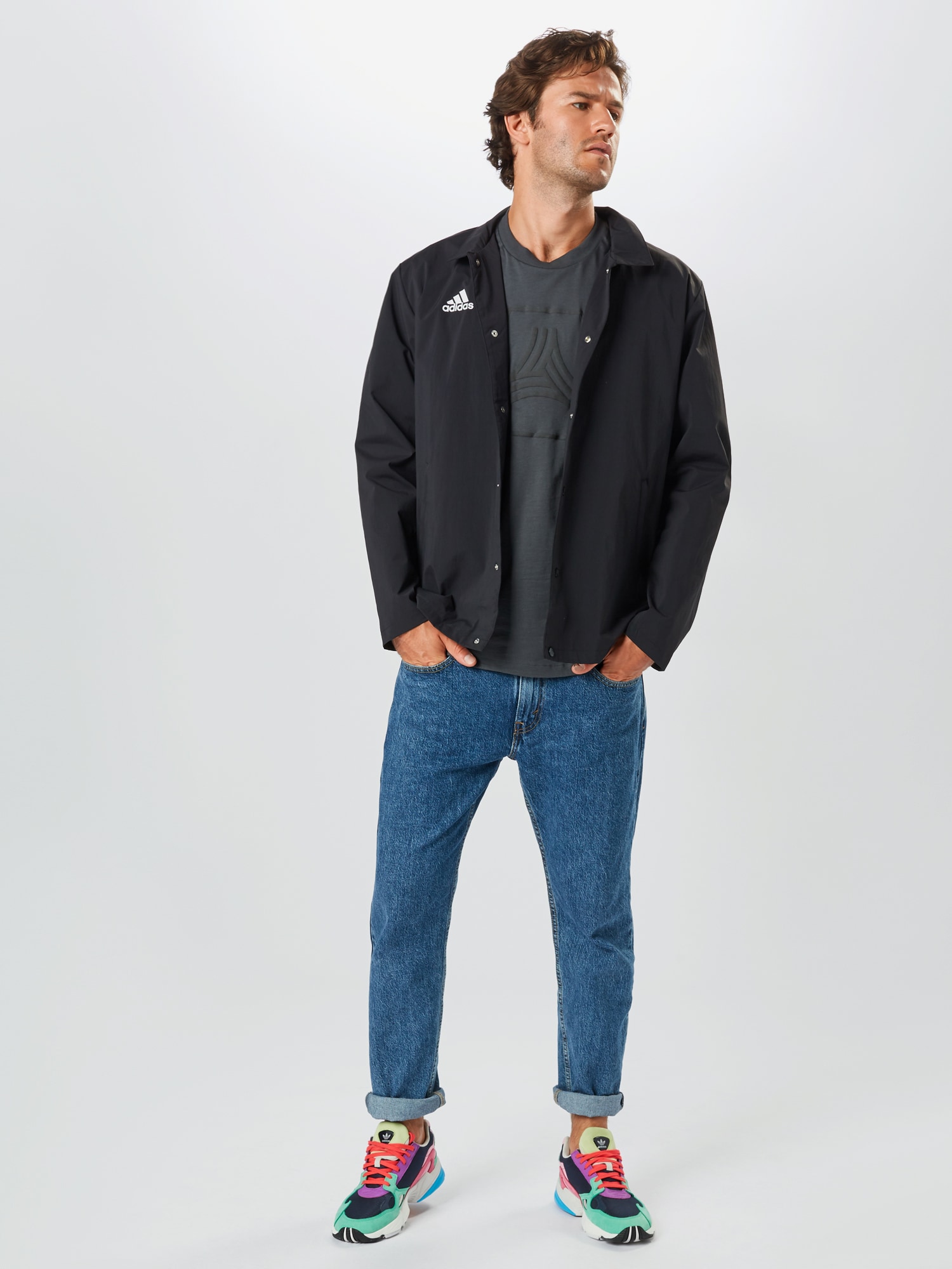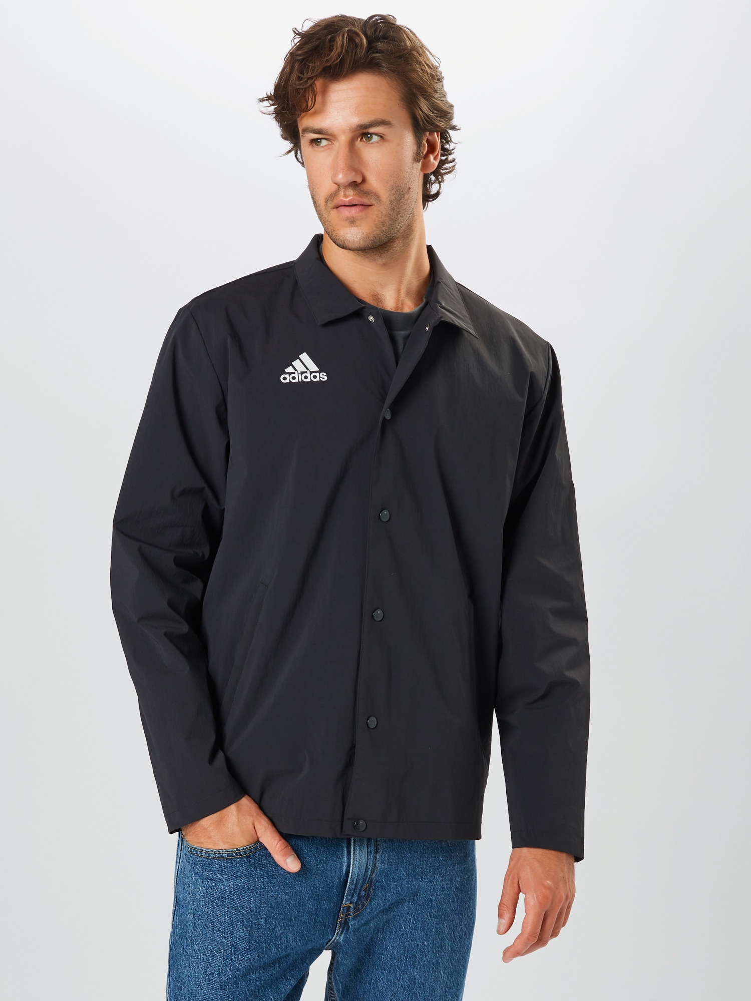 Design: Tiv/ margine tighelită, Fentă cu capse, Tiv drept, Guler întors; Tip de închidere: Capsă; Căptușeală: Necăptușit; Imprimeu: Cu logo imprimat; Tip de geacă: Geacă de antrenament; Detalii: Cusături ton în ton, Material neted, Imprimeu cu logo; Croi: Croi normal