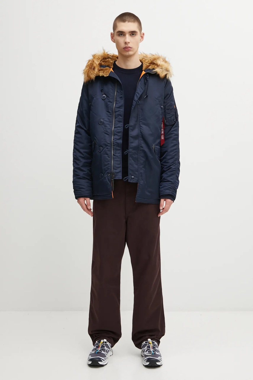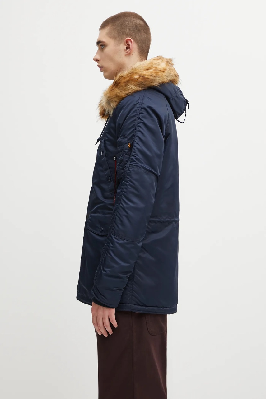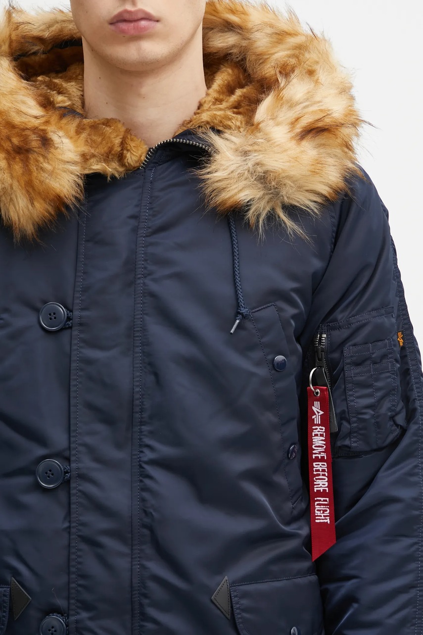 Alpha Industries geacă N3B 103141 07 bărbați bordo, iarnă, căptușită izolată, glugă cu blană artificială detașabilă, fermoar, buzunar pe mânecă
