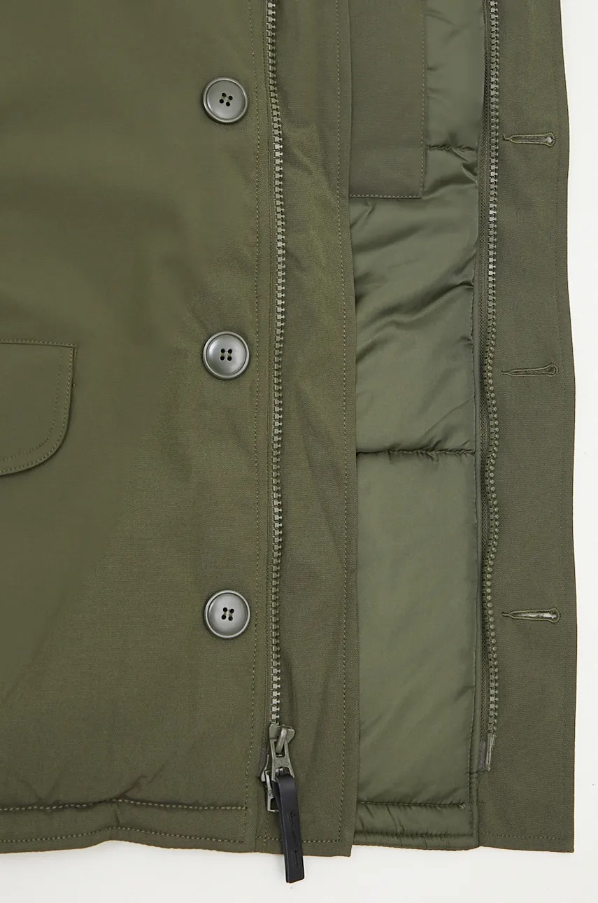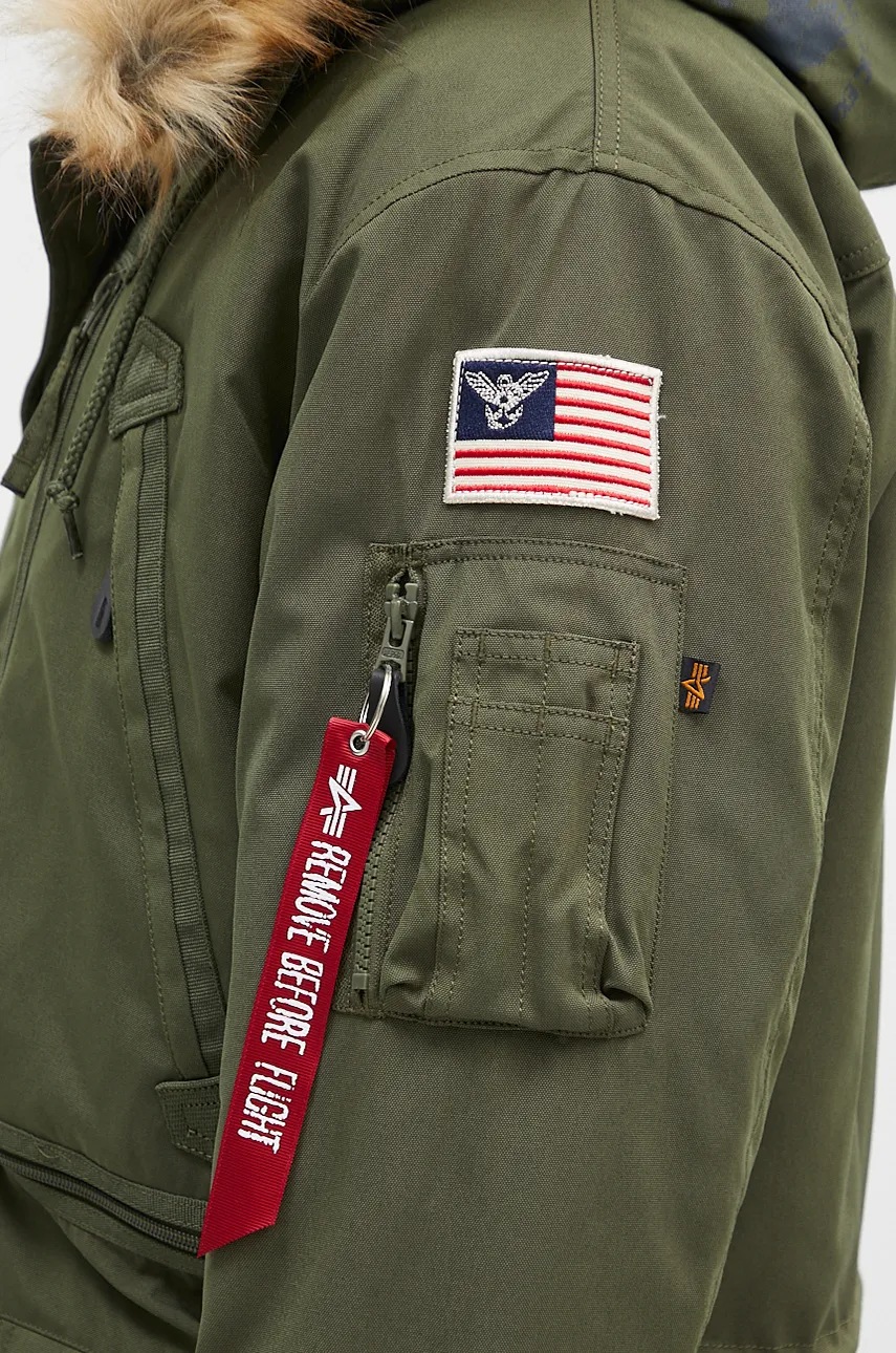 Alpha Industries Geacă Polar Bărbați Verde, glugă detașabilă cu blană artificială, închidere cu fermoar și nasturi, buzunare cu fermoar, guler înalt