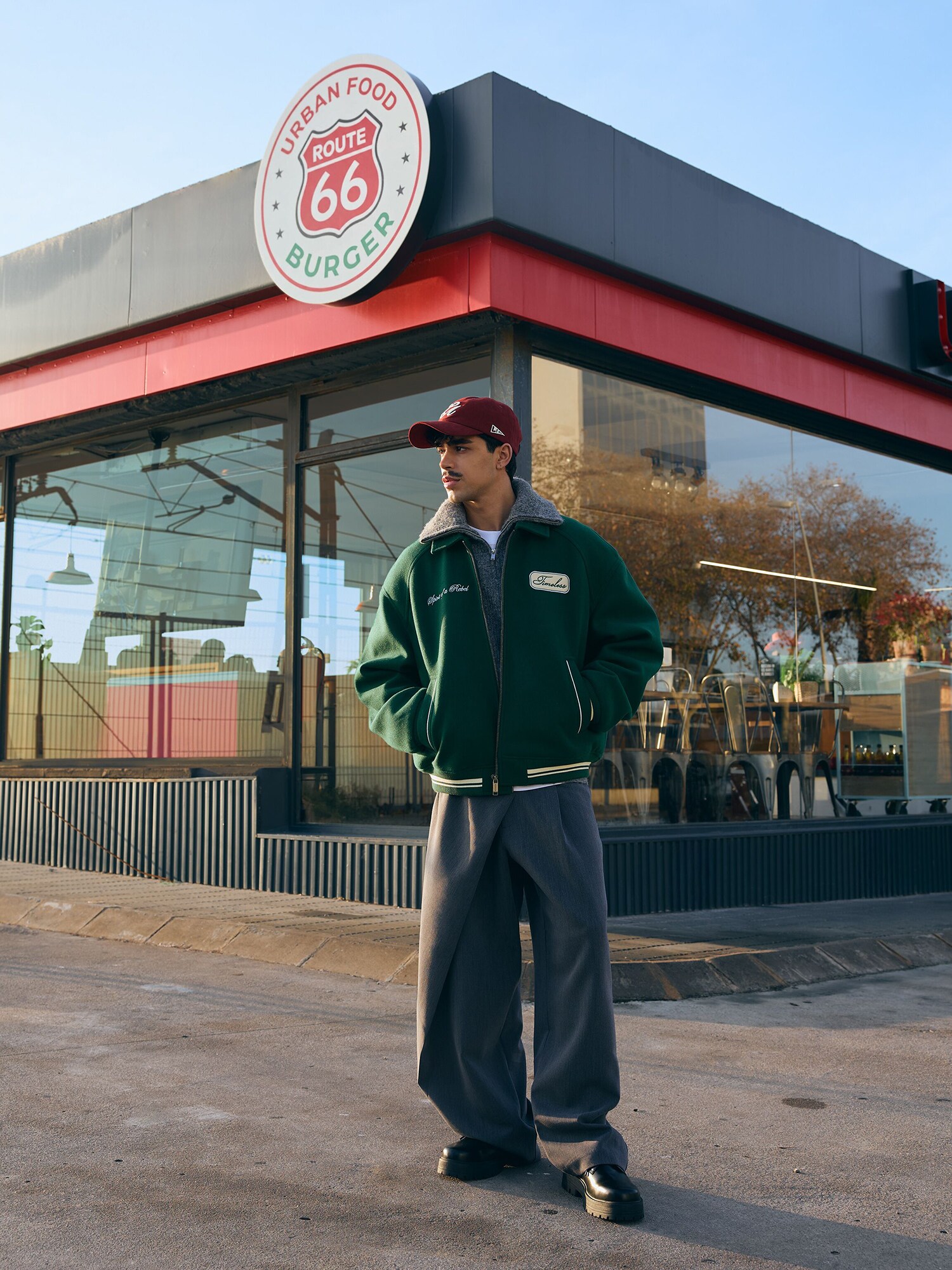 Bershka Geacă de primăvară-toamnă bej deschis / verde smarald / alb