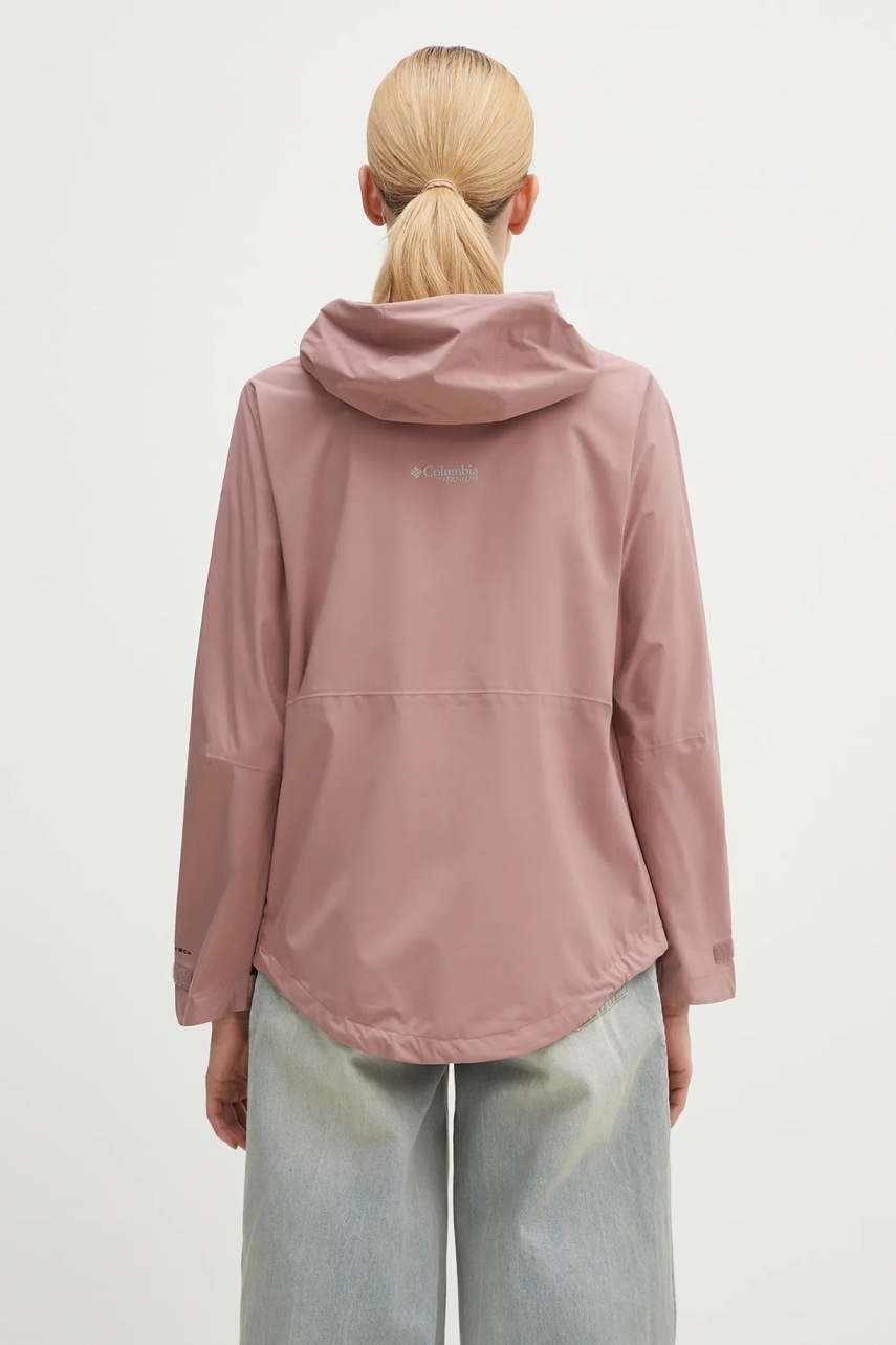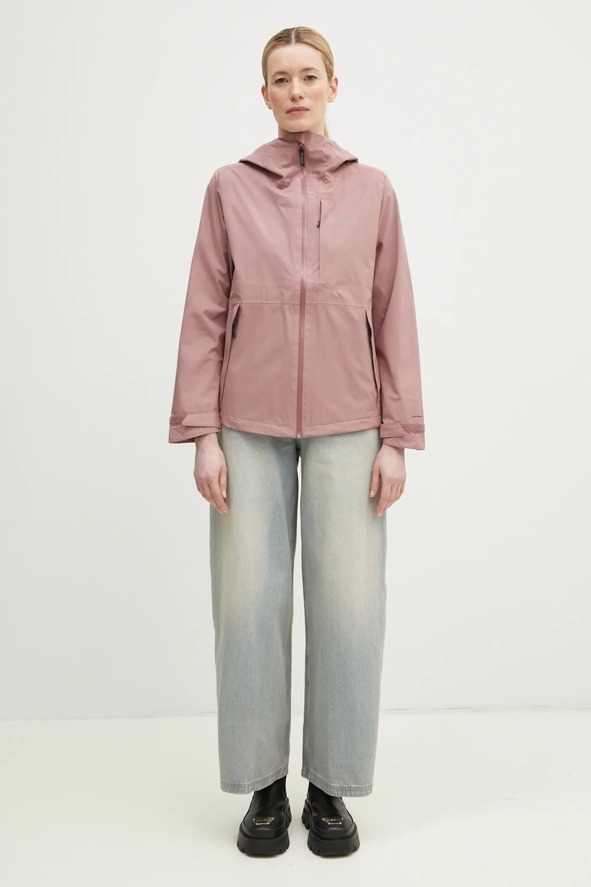 Columbia Jachetă de exterior Ampli-Dry II roz, mărimea S, din fibre reciclate, Omni-Tech, hidrofugă fără PFC, buzunare cu fermoar