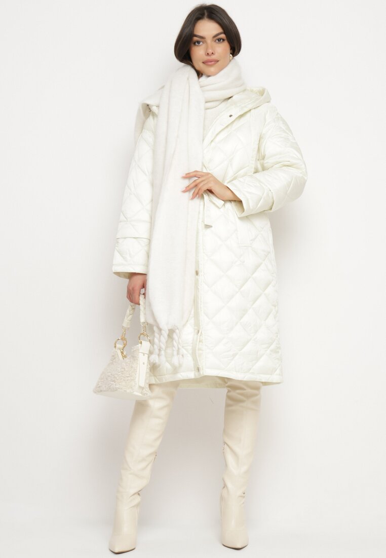 Geacă Bej deschis Matlasată lungă cu Glugă, Centură și șnururi în Talie Nikiana
