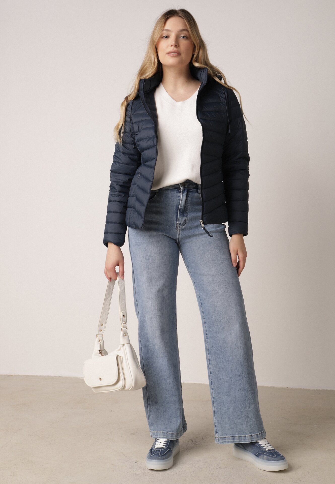 Geacă Clasică bleumarin de tranziție cu matlasare și glugă detașabilă Pretiella
