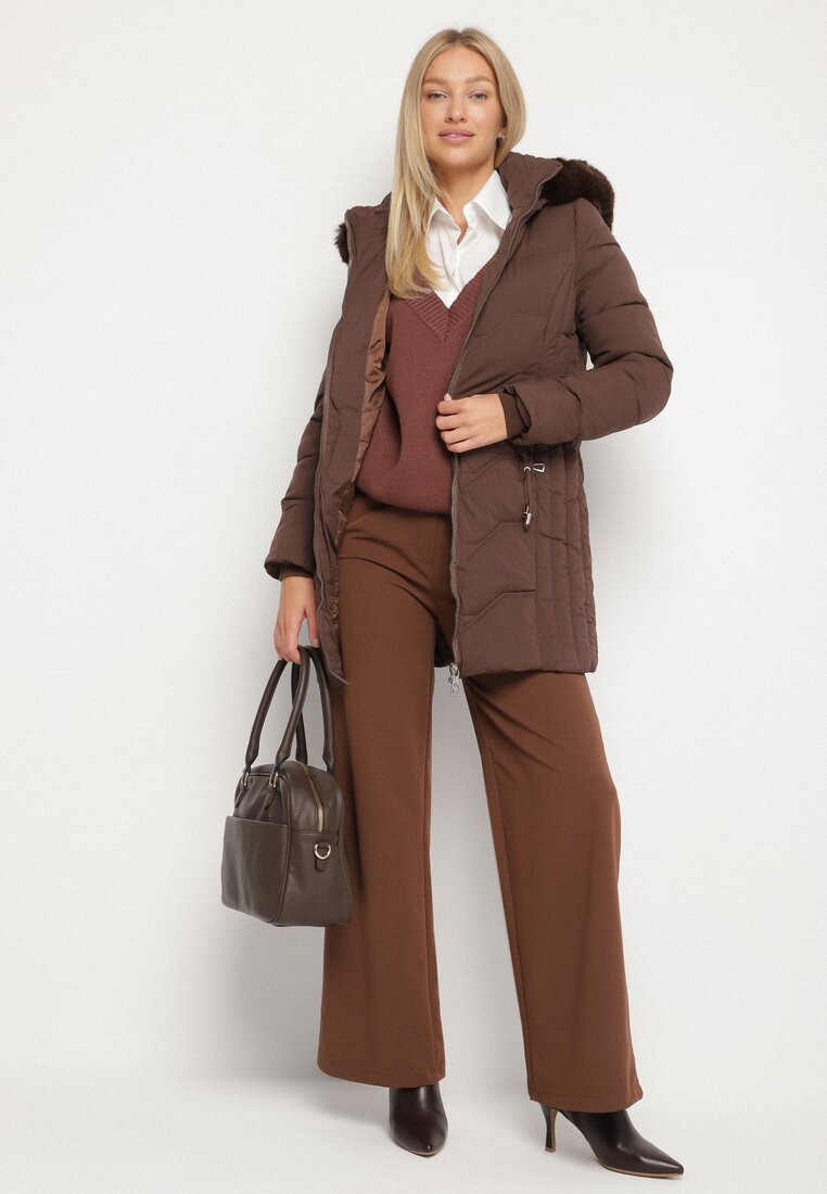 Jachetă Palton Maro cu Matlasare și Glugă cu Blană Navimesa