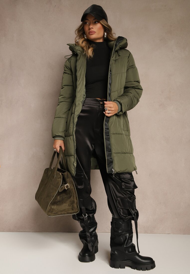 Geacă Matlasată Verde închis cu Glugă și Fermoare Laterale Lundrie