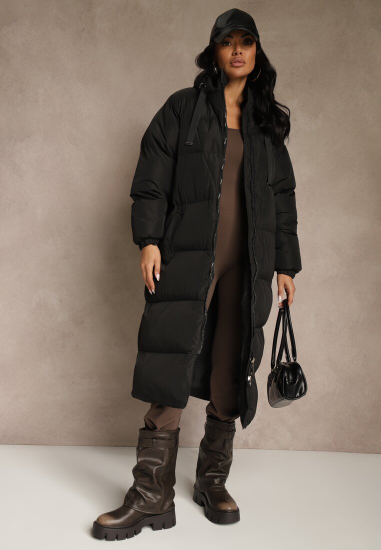 Geacă Neagră Lungă Matlasată cu Glugă Serea