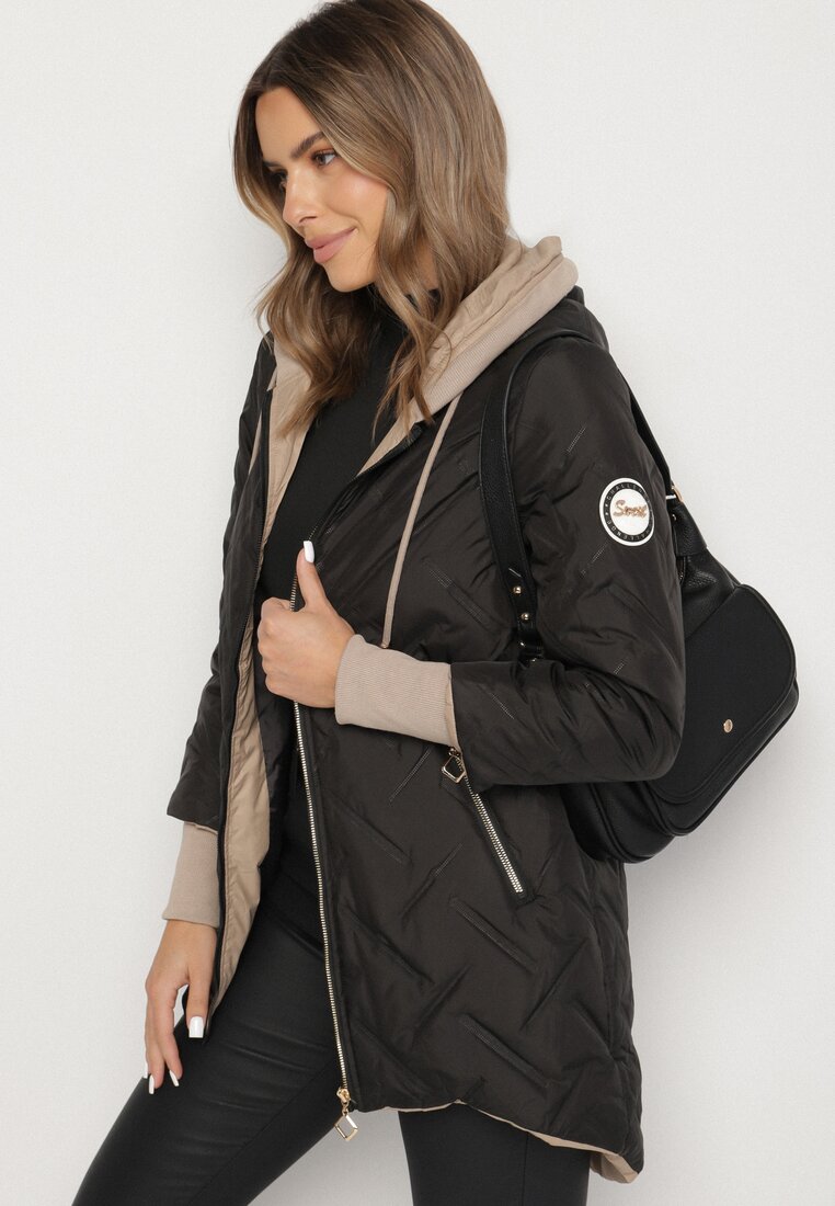 Geacă Neagră Matlasată cu Spate prelungit și Glugă Melune