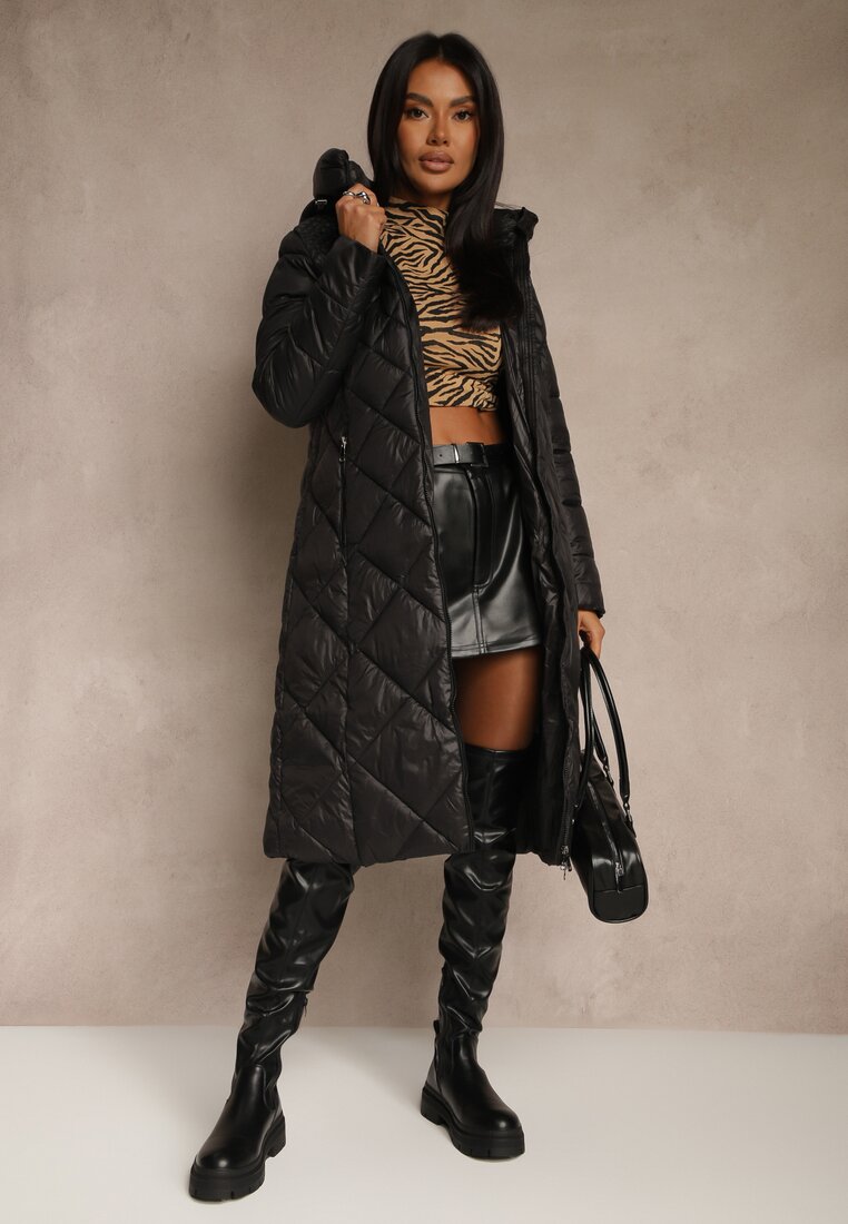 Geacă Neagră sub Genunchi Matlasată Fipha