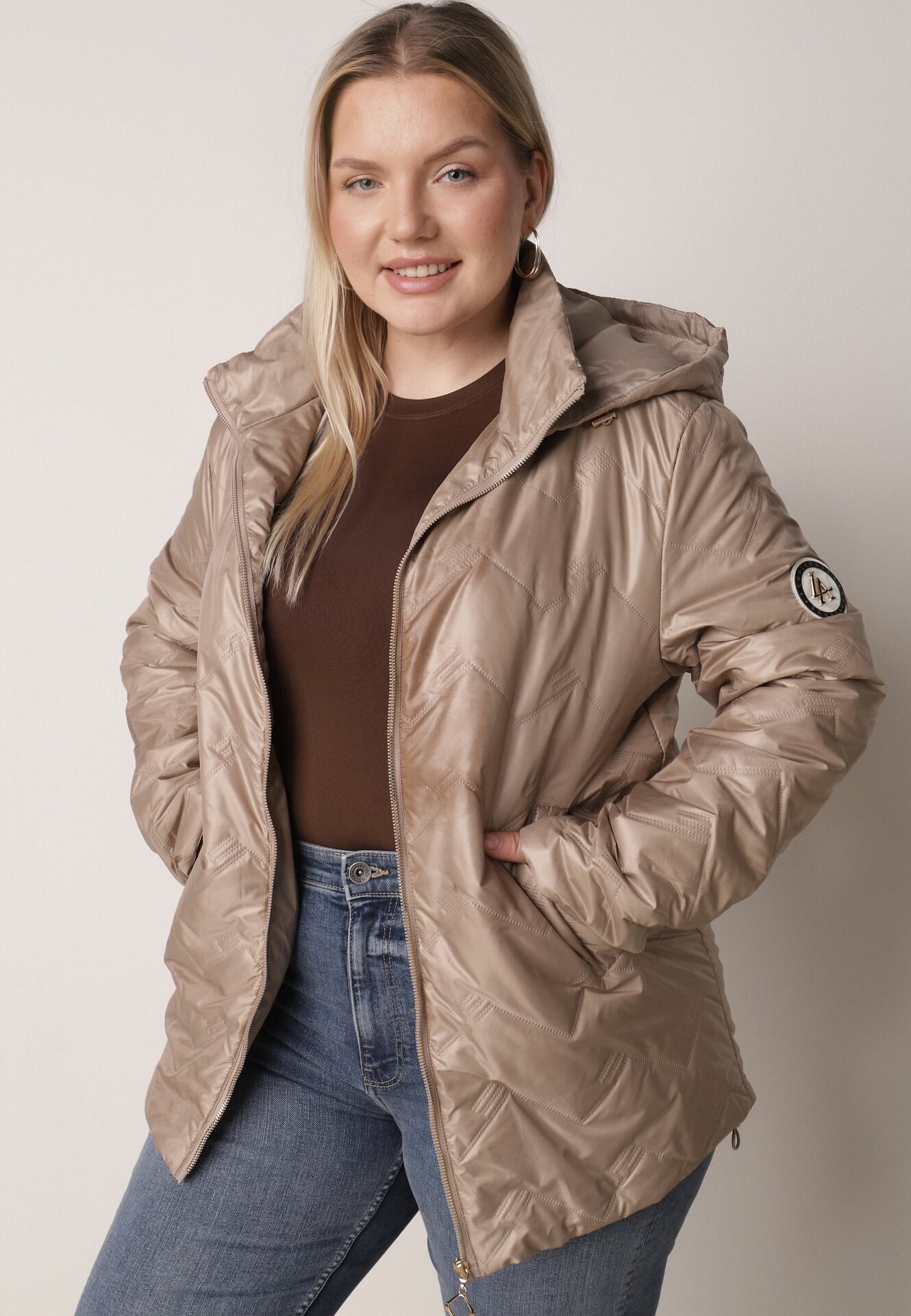 Jachetă Bej Închisă Pikată De Tranziție Cu Croială Simplă Cu Glugă Vimoris