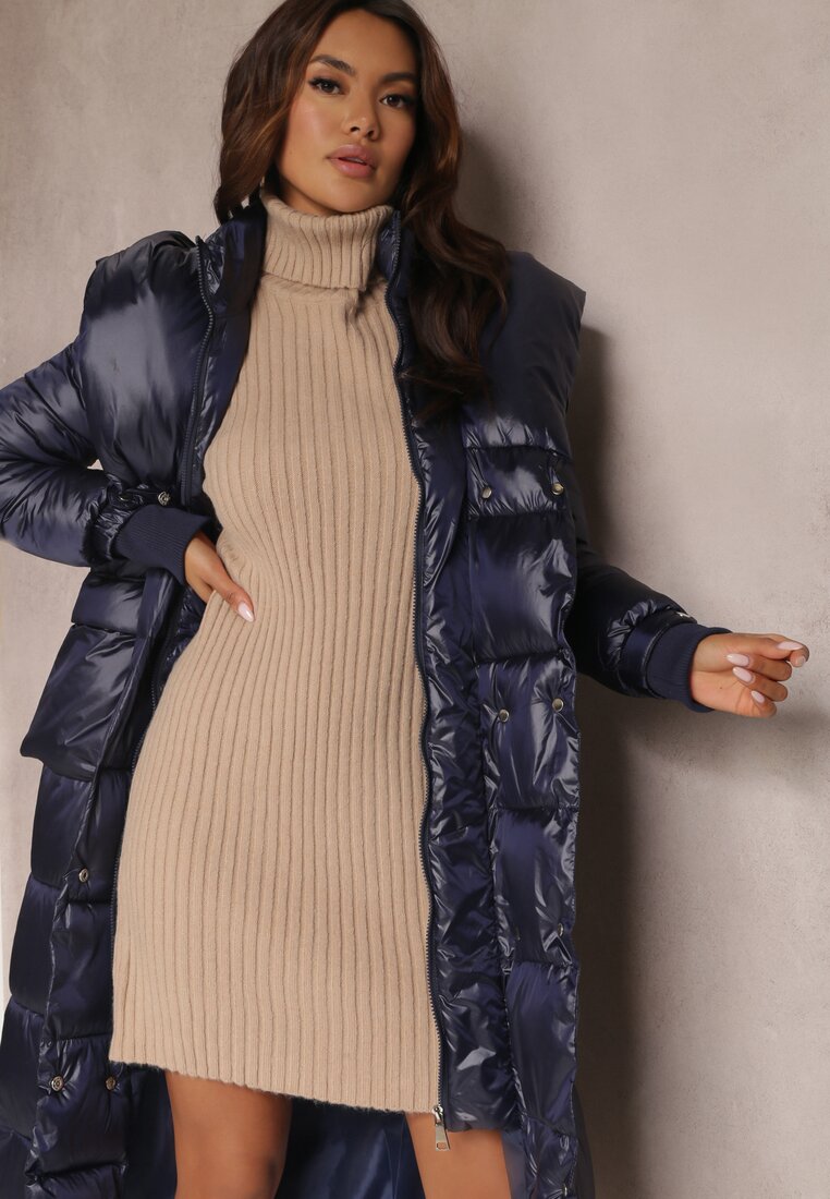 Jachetă Bleumarin Matlasată Lungă Dudlat