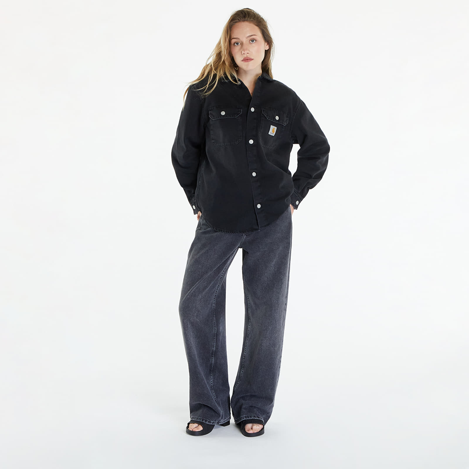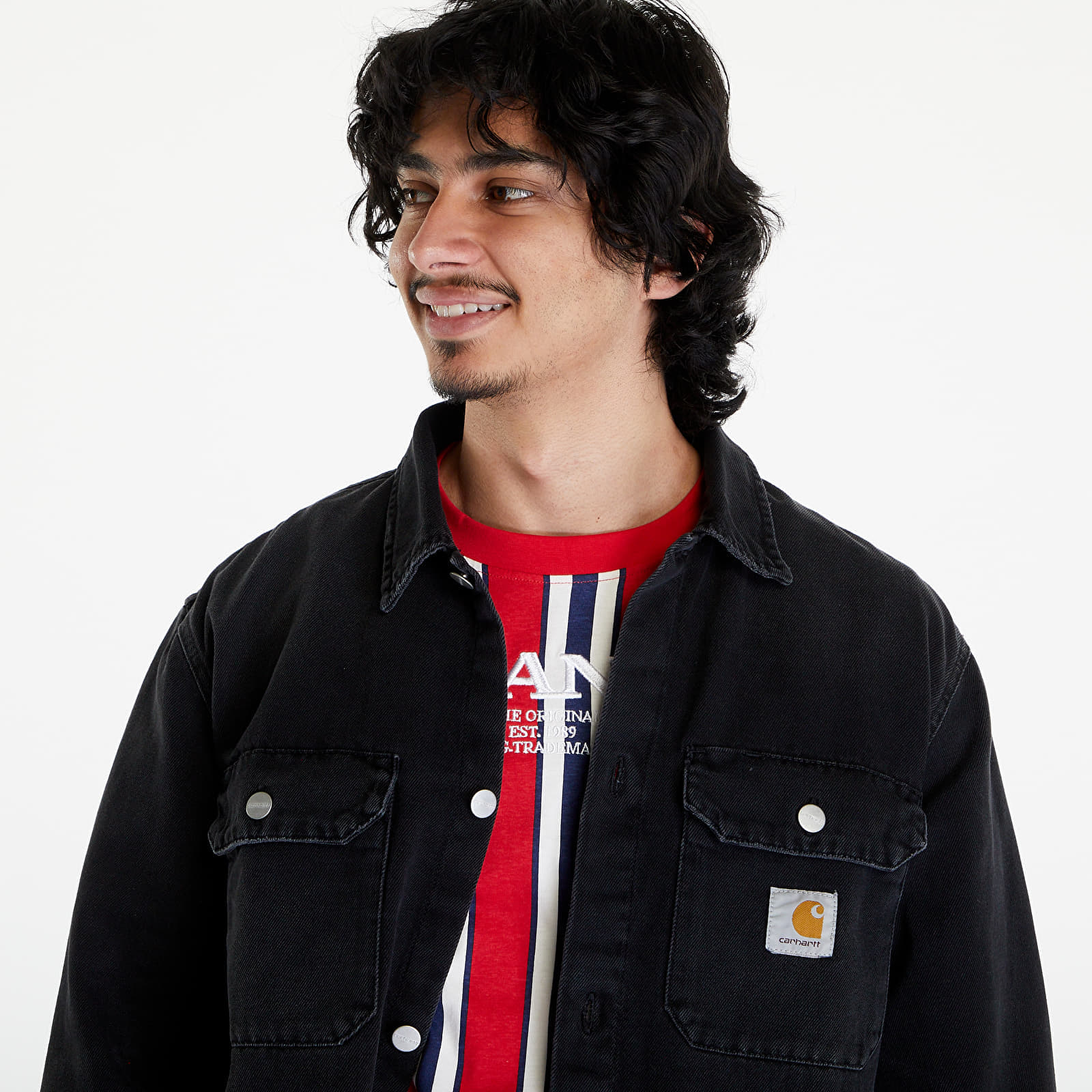Carhartt WIP Jachetă Harvey Shirt Jac Unisex Black Dark Used Wash XS