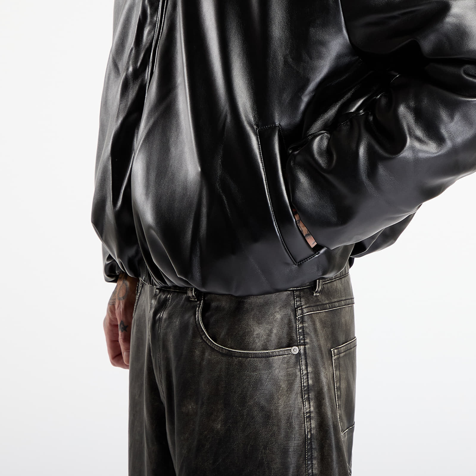 Jachetă MISBHV Faux Leather Puffer Bomber Jacket Black M