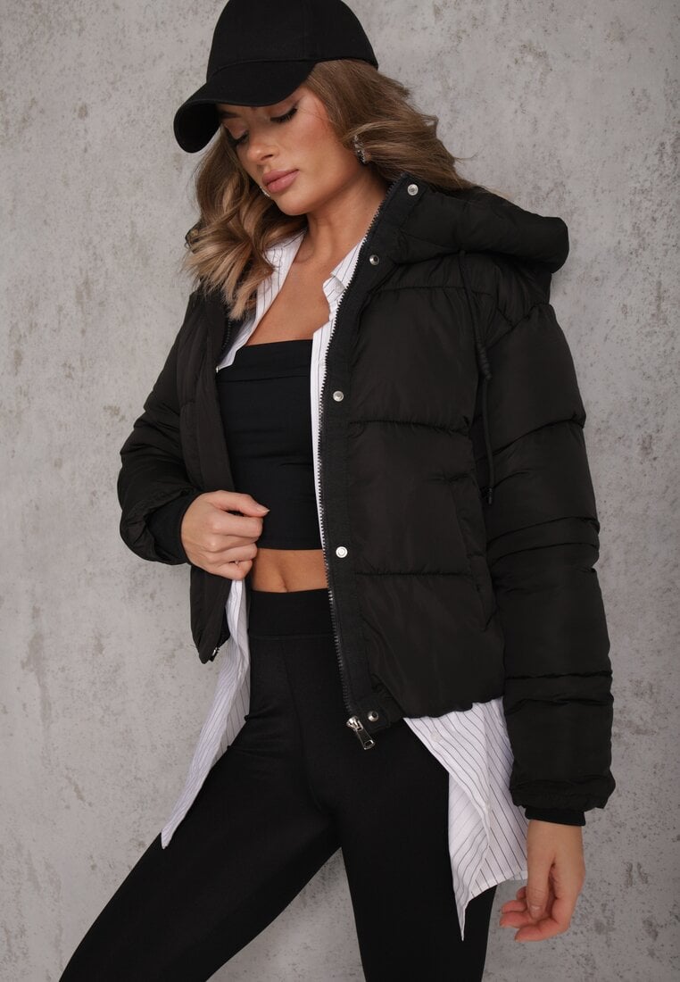 Jachetă Neagră Matlasată Puffer cu Glugă Mivvia