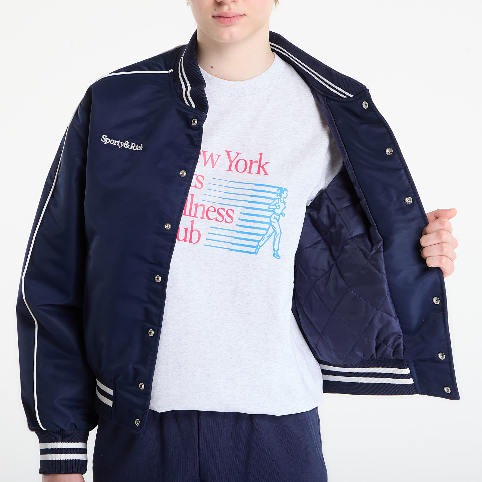 Jachetă Sporty & Rich Yankees Curve Nylon Varsity Jacket Dark Navy/ White S la preț atractiv de doar 2099 lei. Producător: Sporty & Rich Mărime: S Culoare: Dark Navy/ White
