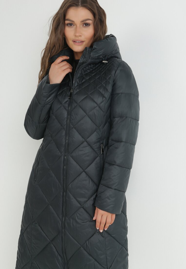 Jachetă Verde închis până la genunchi Matlasată Viphee
