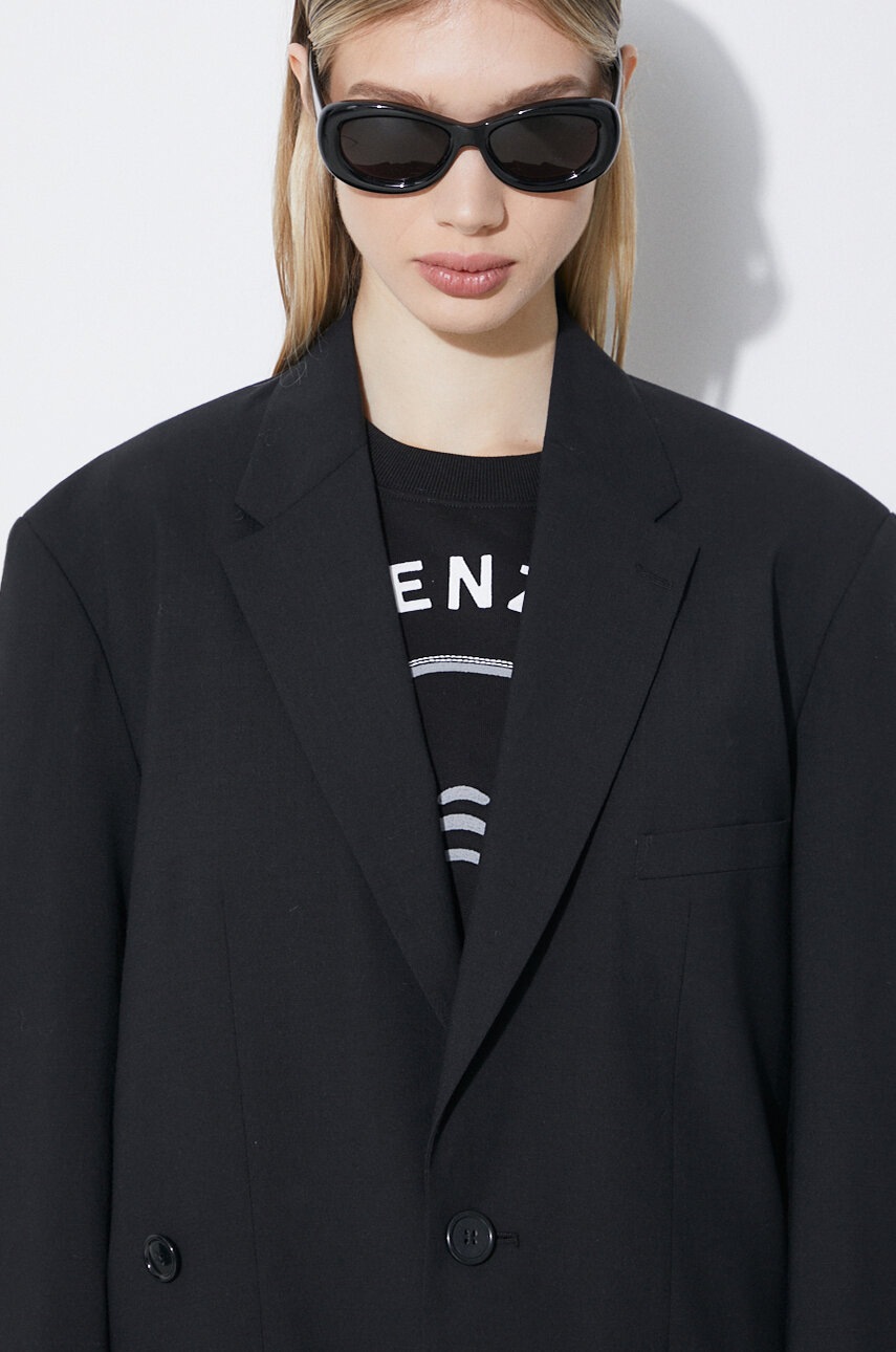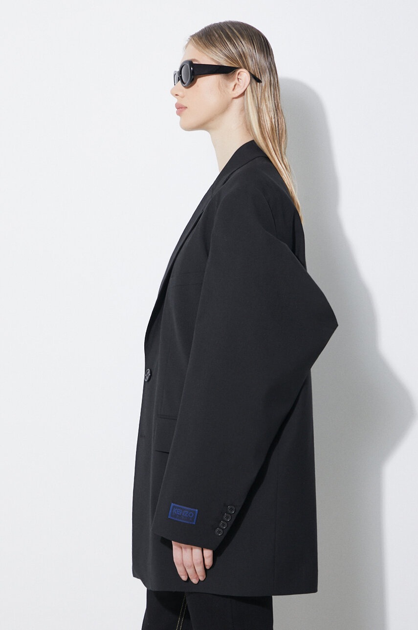 Kenzo Geaca de lana Solid Kimono Blazer, culoare negru, marimea 36, captusita, inchidere cu nasture, buzunare cu clapete
