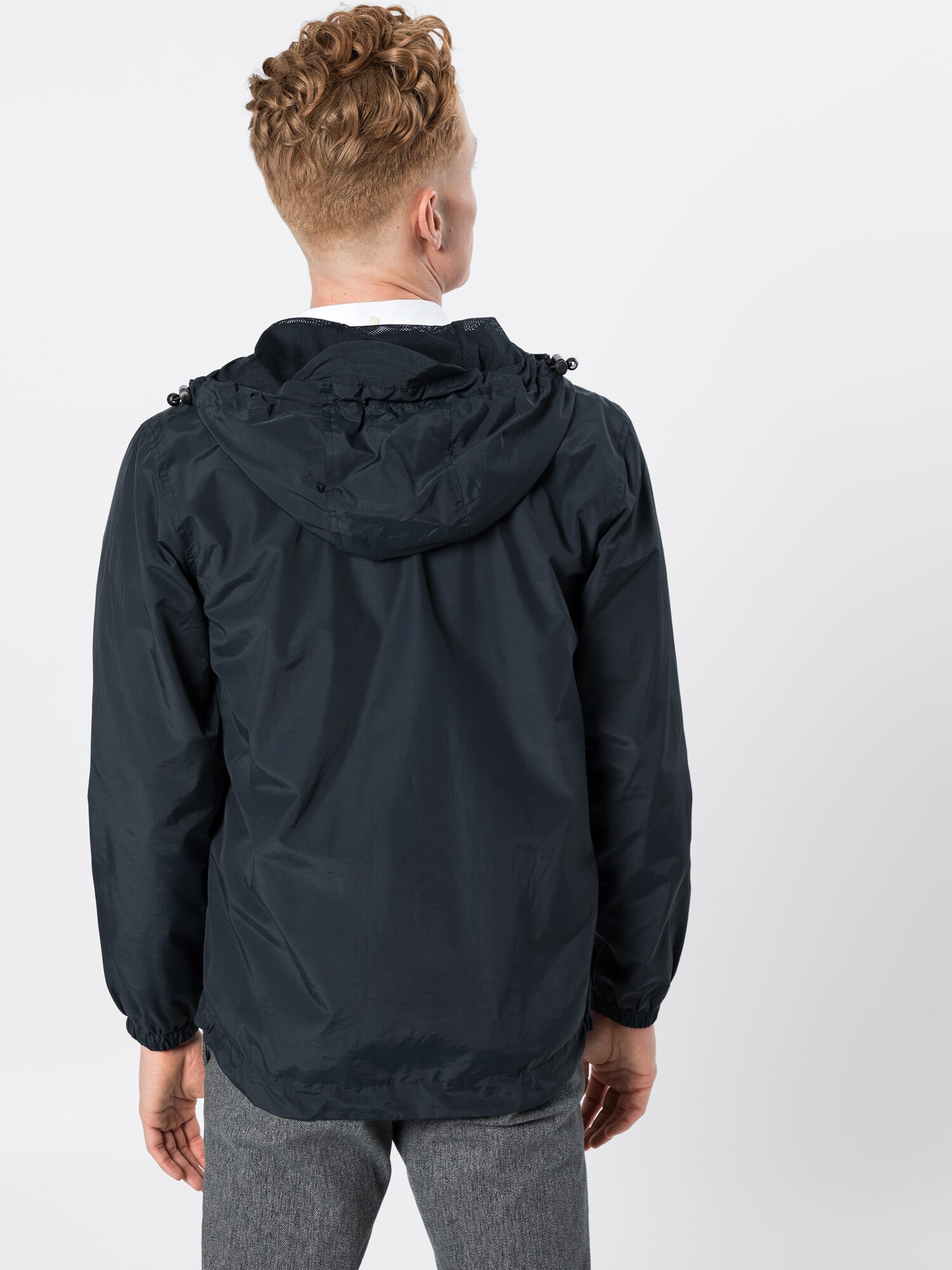 Design: Tiv/ betelie elastică, Guler tunică cu glugă, Croială pătrată, Umăr întretăiat, Buzunare cu clapă/ cu laist; Tip de închidere: Fermoar; Căptușeală: Căptușit parțial; Imprimeu: Monocrom; Detalii: Tiv cu șiret, Petic cu logo, Cusături ton în ton; Croi: Croi normal