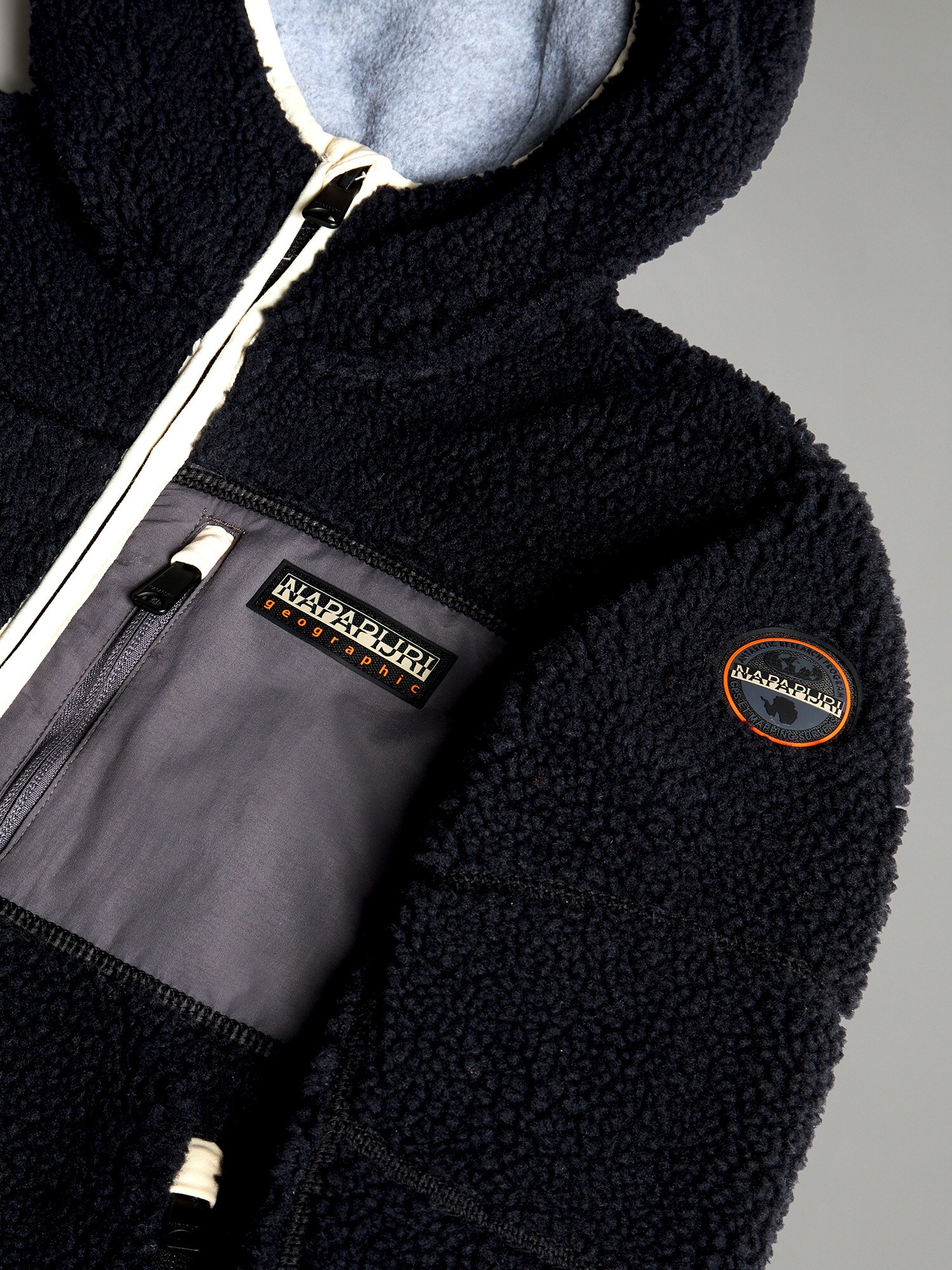 Design: Buzunar la piept, Buzunare laterale cu fermoar; Tip de închidere: Fermoar; Material: Teddy; Decolteu: Cu glugă; Imprimeu: Cu logo imprimat; Detalii: Petic cu logo, Material moale; Croi: Croi normal; Lungime mâneci: Mâncecă lungă; Lungime: Lungime normală