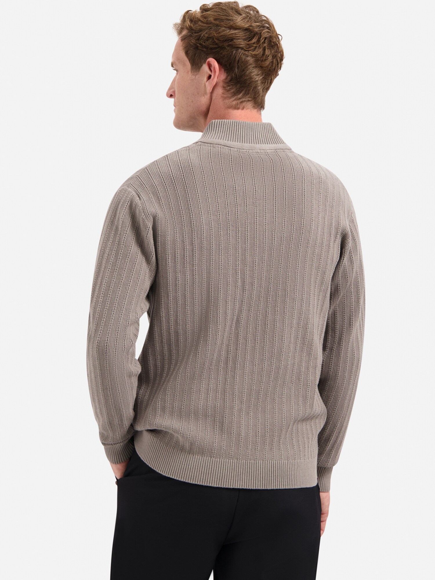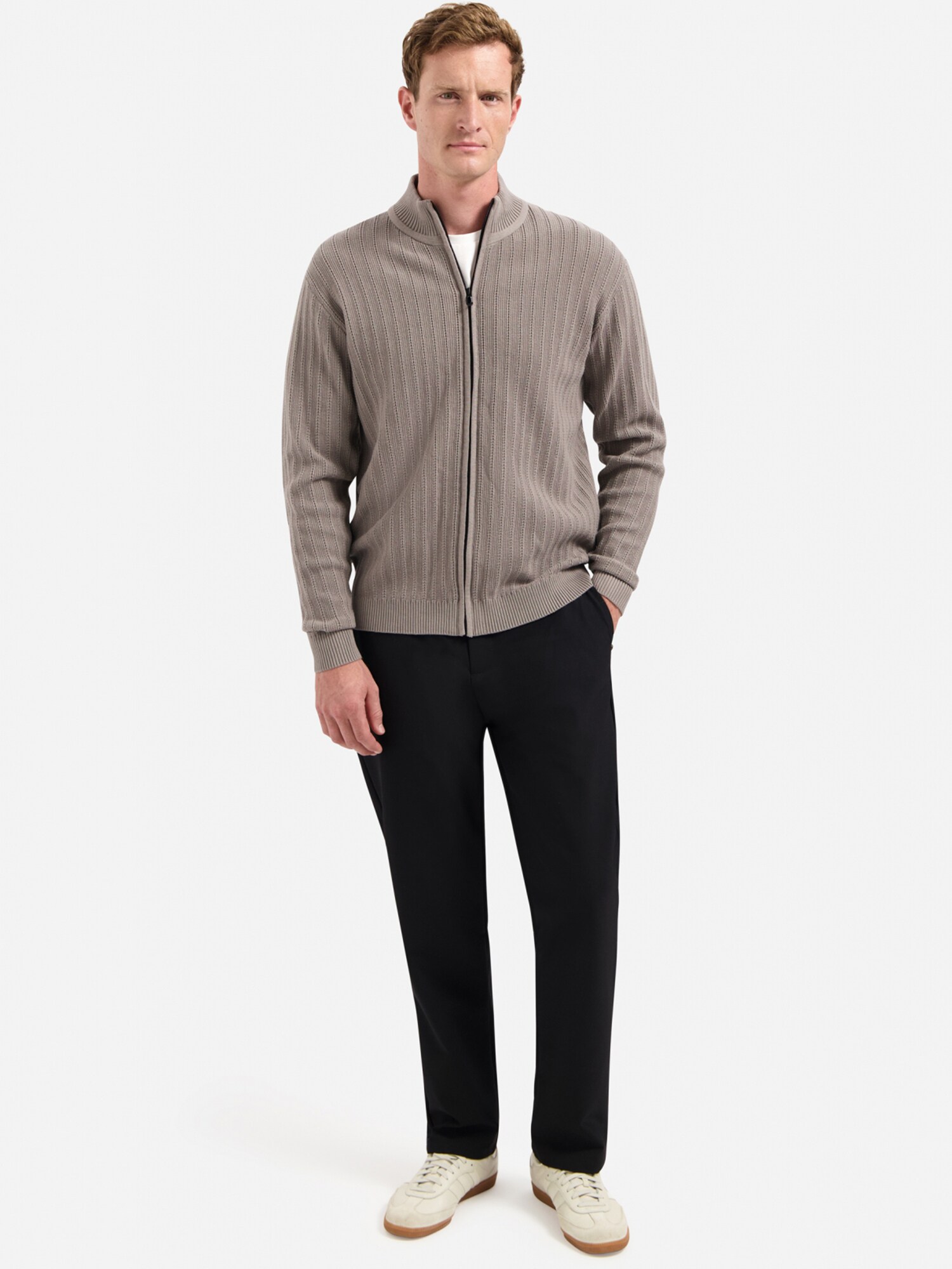Design: Guler din tricot cu striații, Tiv drept, Manșete cu striații; Tip de închidere: Fermoar; Material: Tricot; Decolteu: Guler tunică; Imprimeu: Monocrom; Detalii: Fully fashioned, Petic cu logo, Material moale; Croi: Croi normal; Lungime mâneci: Mâncecă lungă; Lungime: Lungime normală