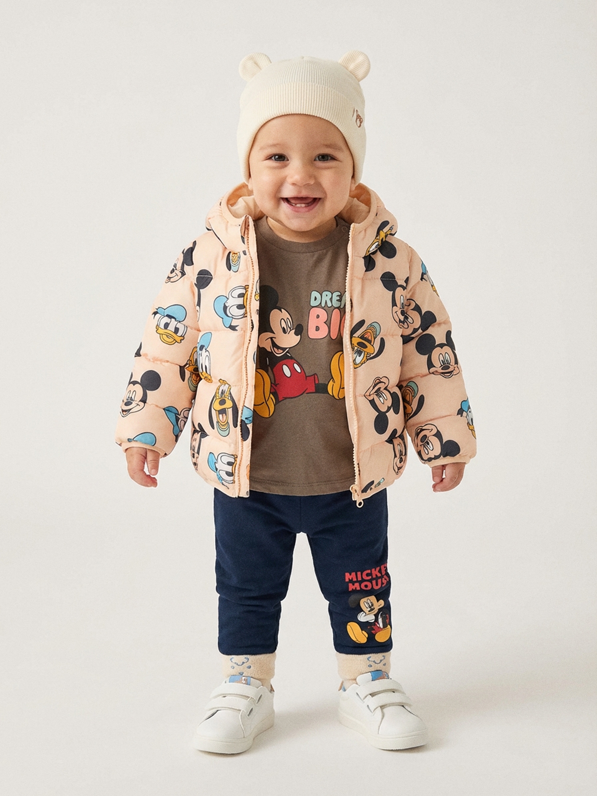 Sinsay - Geacă puffer matlasată cu glugă Mickey Mouse - bej