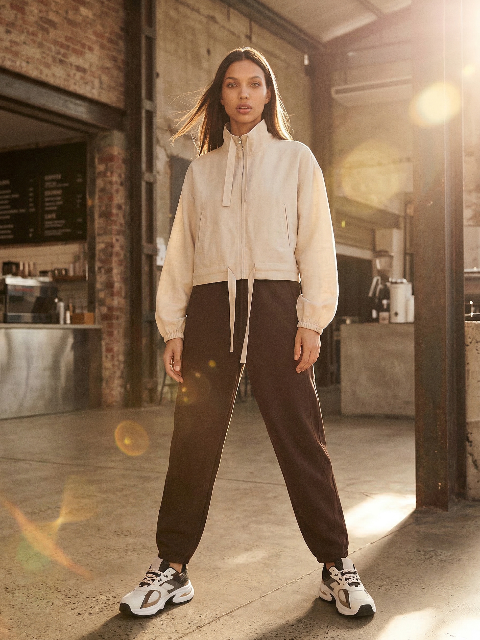 Sinsay - Jachetă bomber din lyocell cu adaos de in - nude