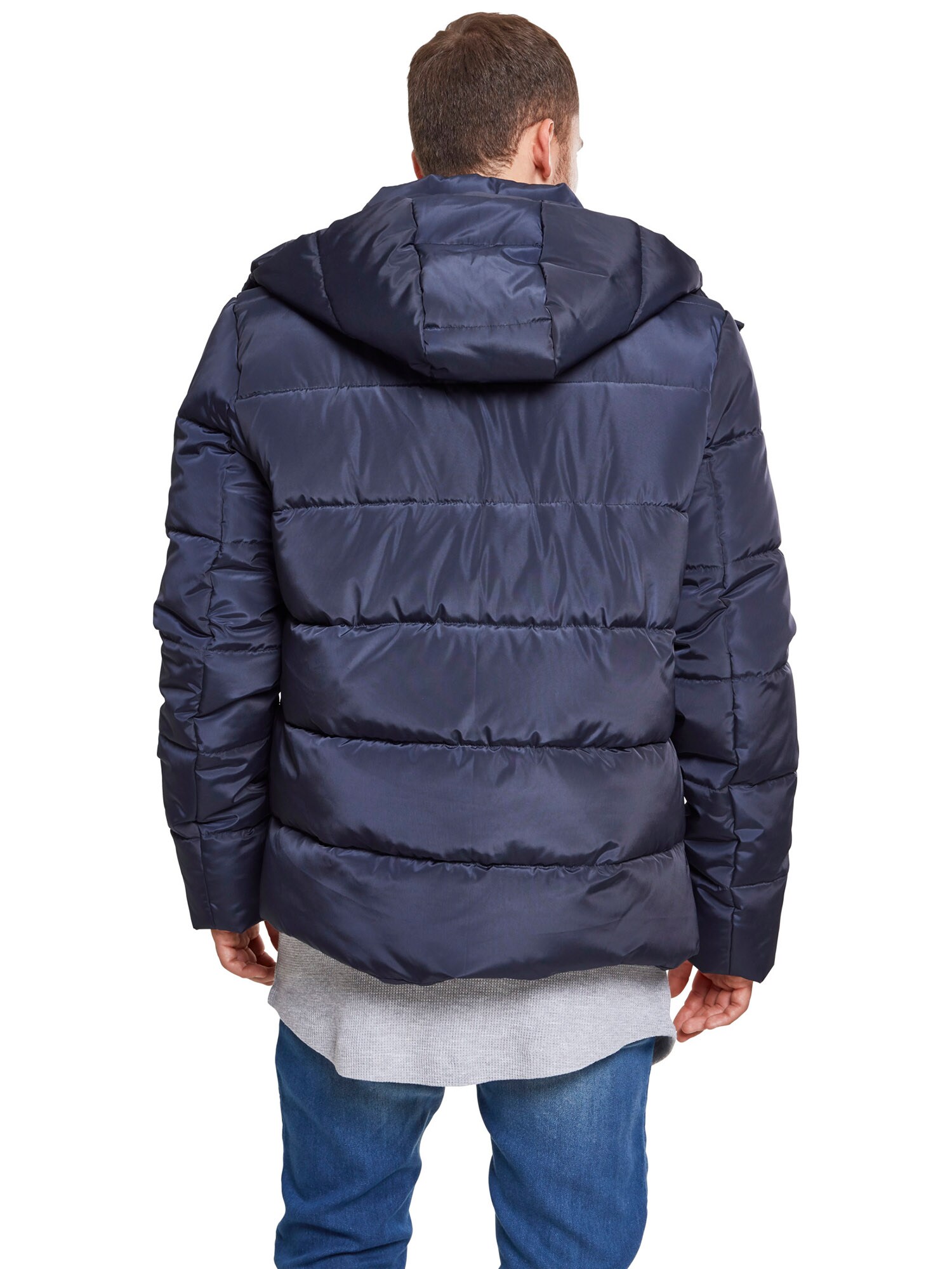 Urban Classics Geacă matlasată de iarnă bleumarin, fermoar, curea detașabilă, guler tunică, buzunare cu fermoar, căptușită cald, croi normal