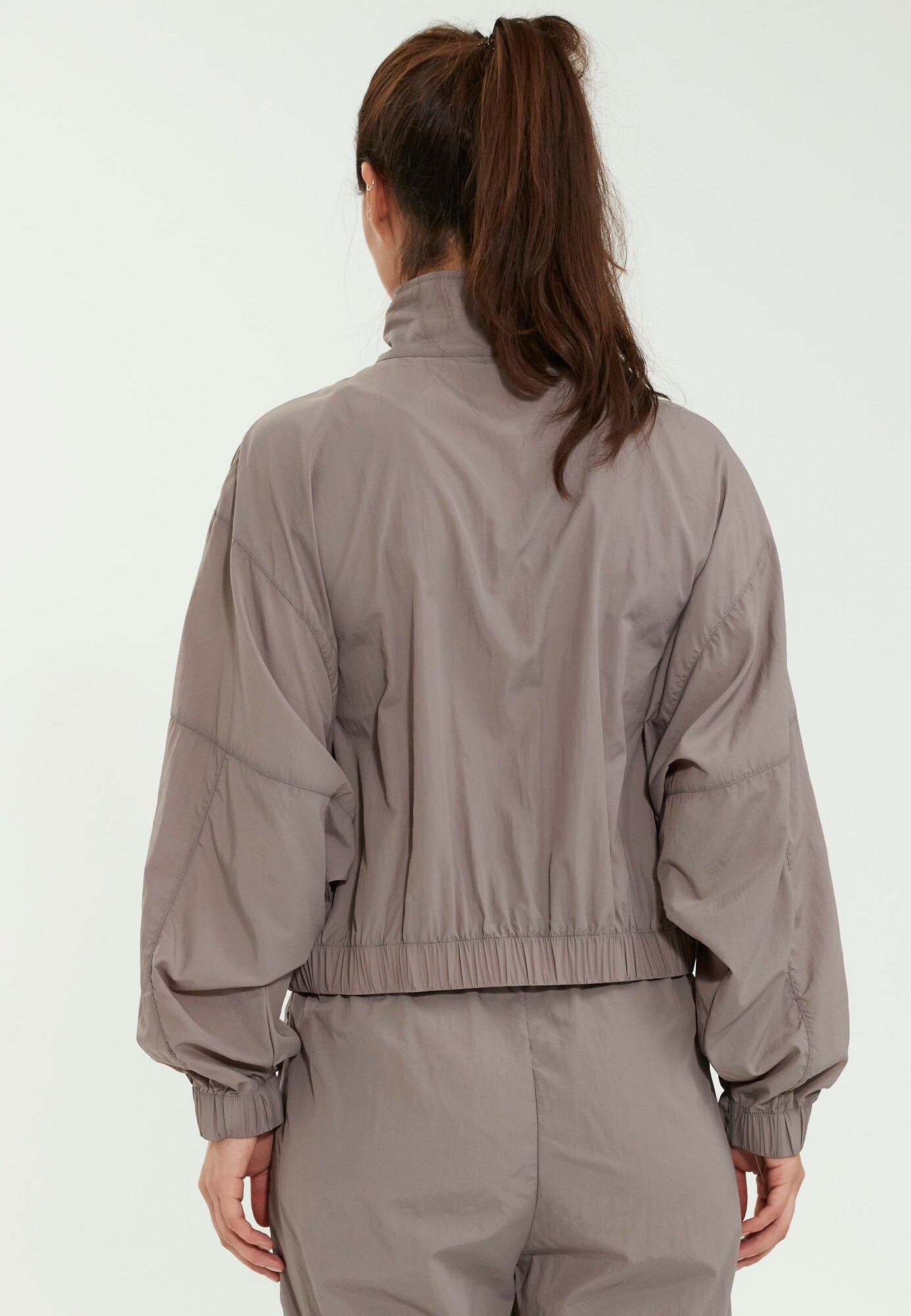 Design: Tiv/ betelie elastică, Guler tunică; Tip de închidere: Fermoar; Căptușeală: Căptușit parțial; Imprimeu: Monocrom; Tip de geacă: Geacă de antrenament; Detalii: Cusături ton în ton, Material ușor; Detalii: Se închide până sus, Buzunar cu fermoar; Croi: Croi lejer