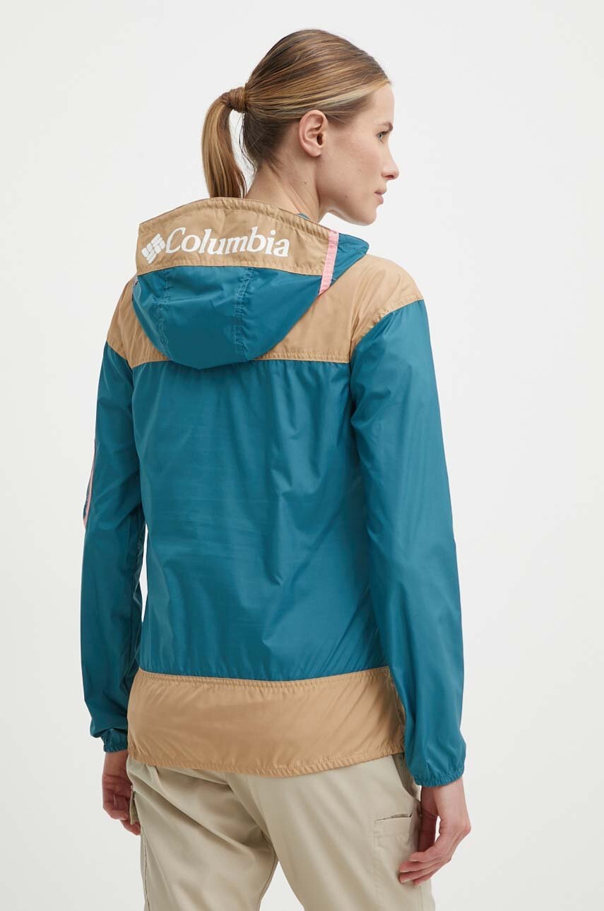 Columbia Geacă Challenger bej, mărimea S, anti-vânt, glugă cu șnur, buzunar frontal