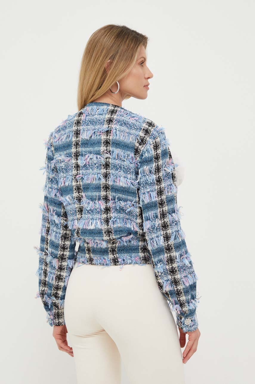 Geaca din colecția Custommade. Model subtire confecționat din material ornamentat. Broșă eficientă atașată.
