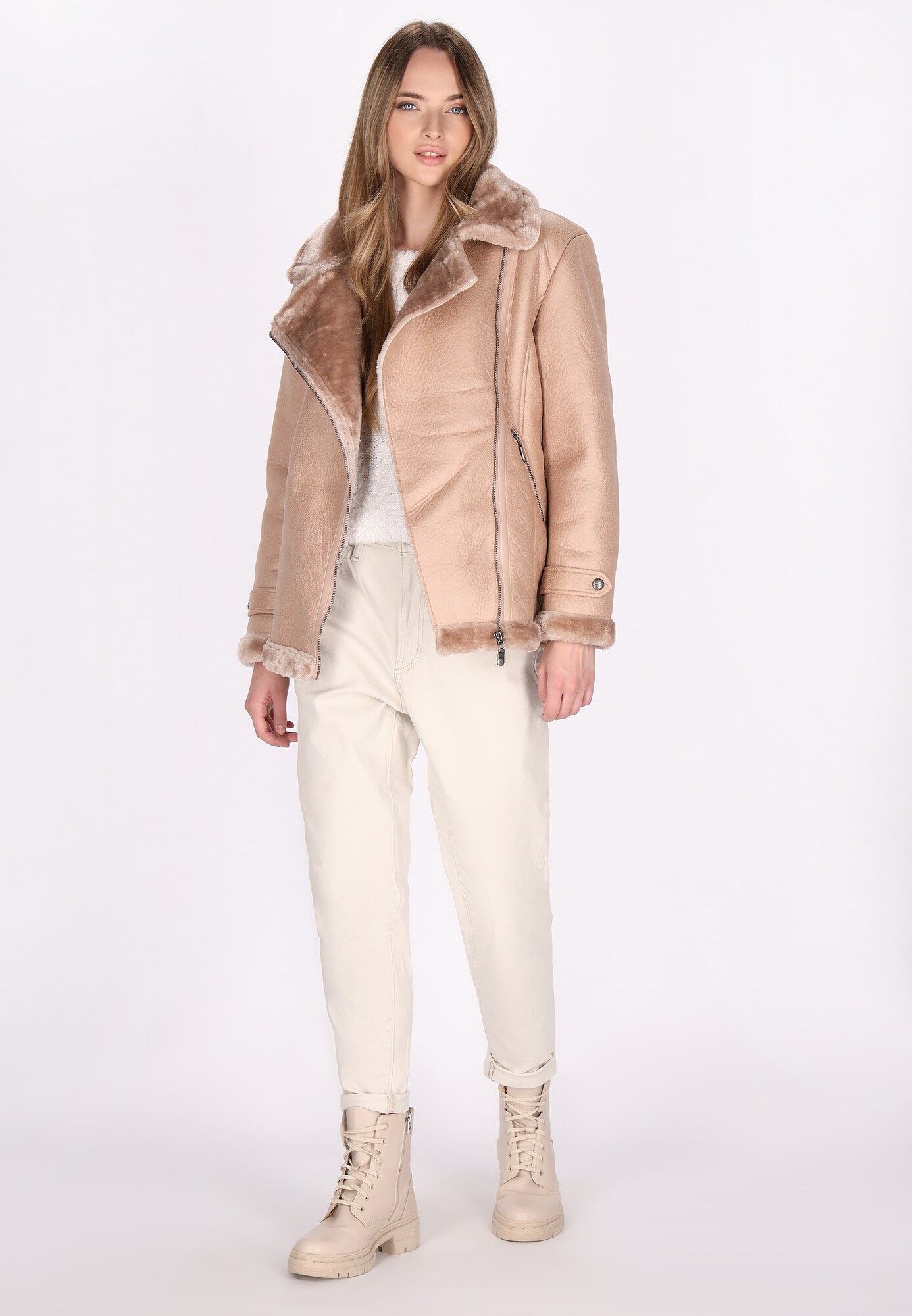 Design: Mâneci foarte lungi, Buzunare laterale cu fermoar; Tip de închidere: Fermoar; Căptușeală: Căptușit parțial; Imprimeu: Monocrom; Detalii: Material neted; Croi: Croi normal