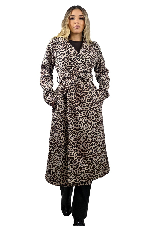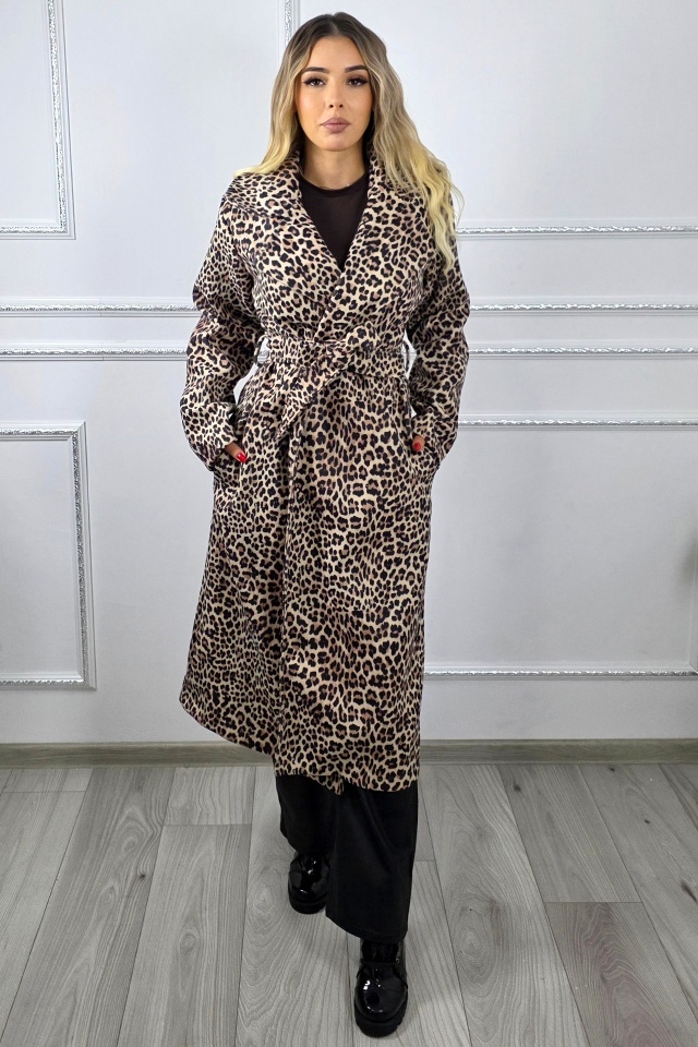 Haina lunga de dama Ophira animal print si cordon, Crem Leopard, Marime S/M