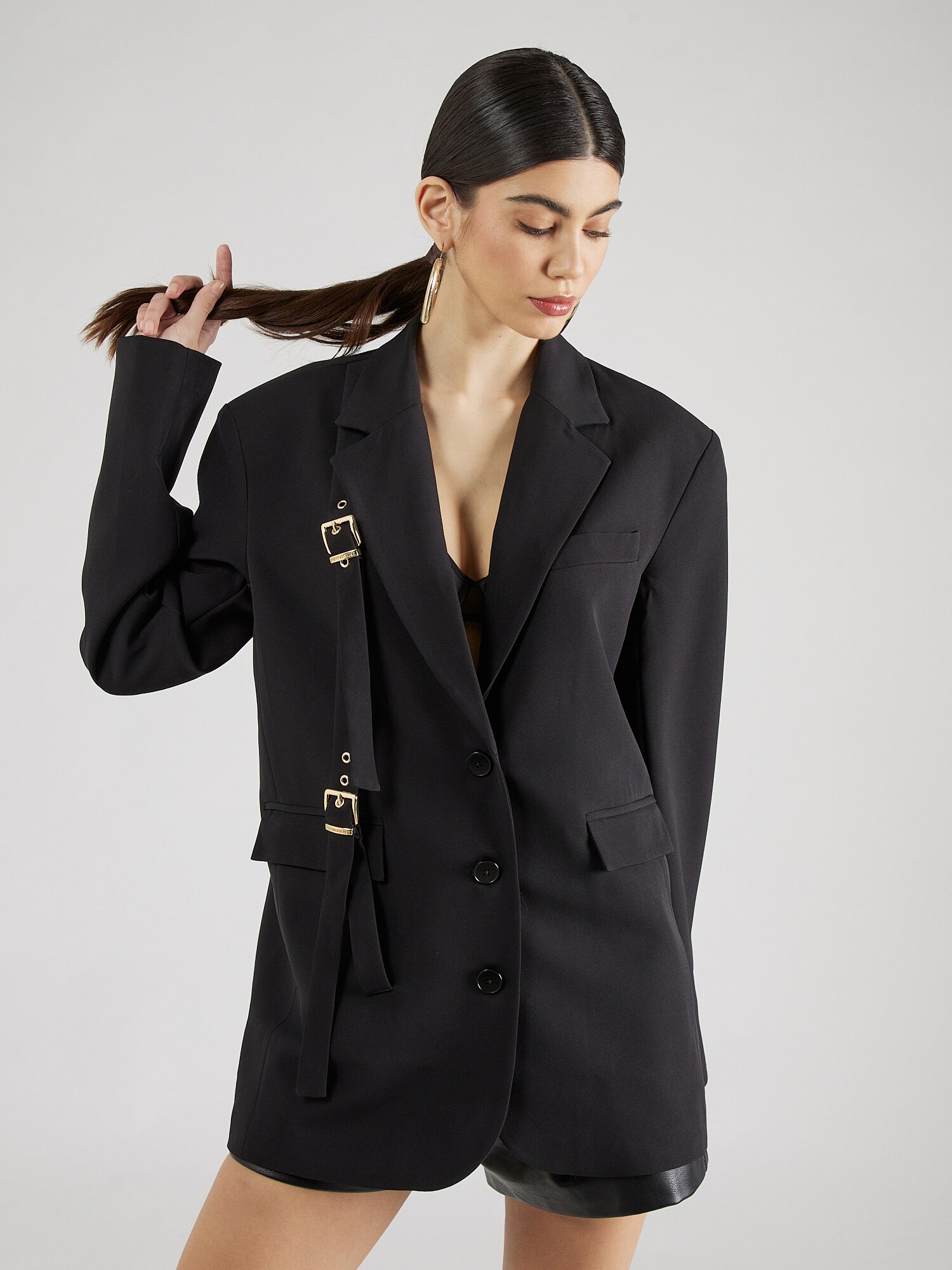 Îmbracă-te cu eleganța rafinată a sacoului Leoni, colaborarea excepțională dintre Hoermanseder și About You. Gulerul său cu rever și buzunarele rabatabile adaugă o notă de sofisticare și funcționalitate, în timp ce designul monocrom îți permite să-l combini cu orice ținută, de la casual la extrem de elegant. Construit din poliester reciclat, acest sacou nu este doar o alegere stilată, ci și una sustenabilă, contribuind astfel la protejarea mediului. Cu o căptușeală parțială și cusături ton în ton, fiecare detaliu este gândit să asigure confortul și stilul tău personal. Alege să te distingi cu un haină care vorbește despre calitate și responsabilitate. Fă o investiție în garderoba ta și transformă-ți fiecare apariție într-o declarație de stil!