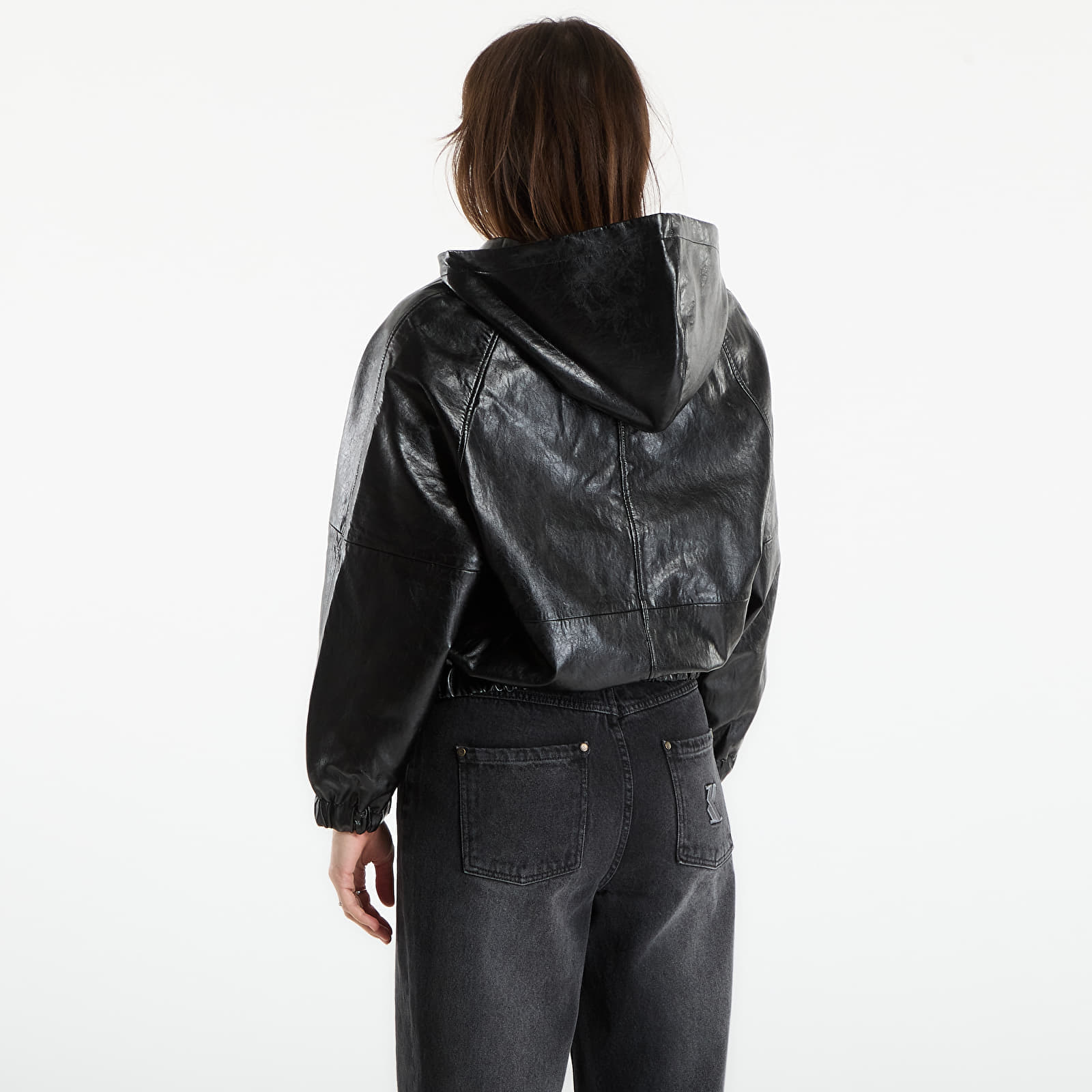 Jachetă Michael Kors Faux Leather Hoodie Black S