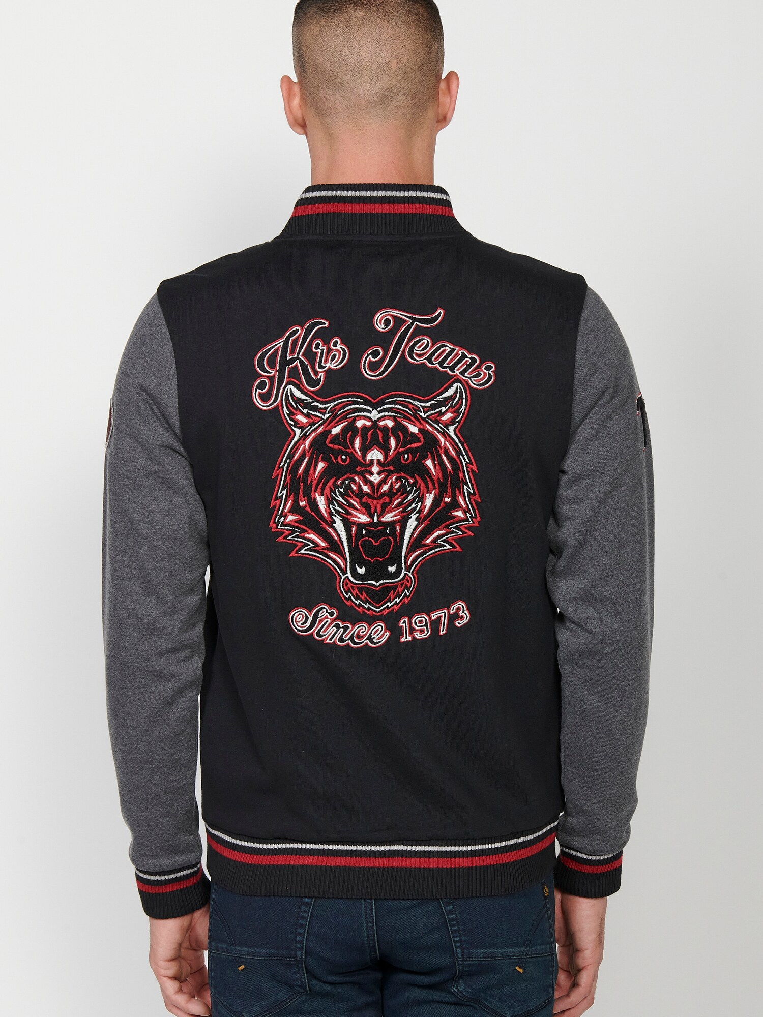 Modelul gecii: Jachetă varsity; Căptușeală: Necăptușit; Imprimeu: Mottoprint; Croi: Croi normal