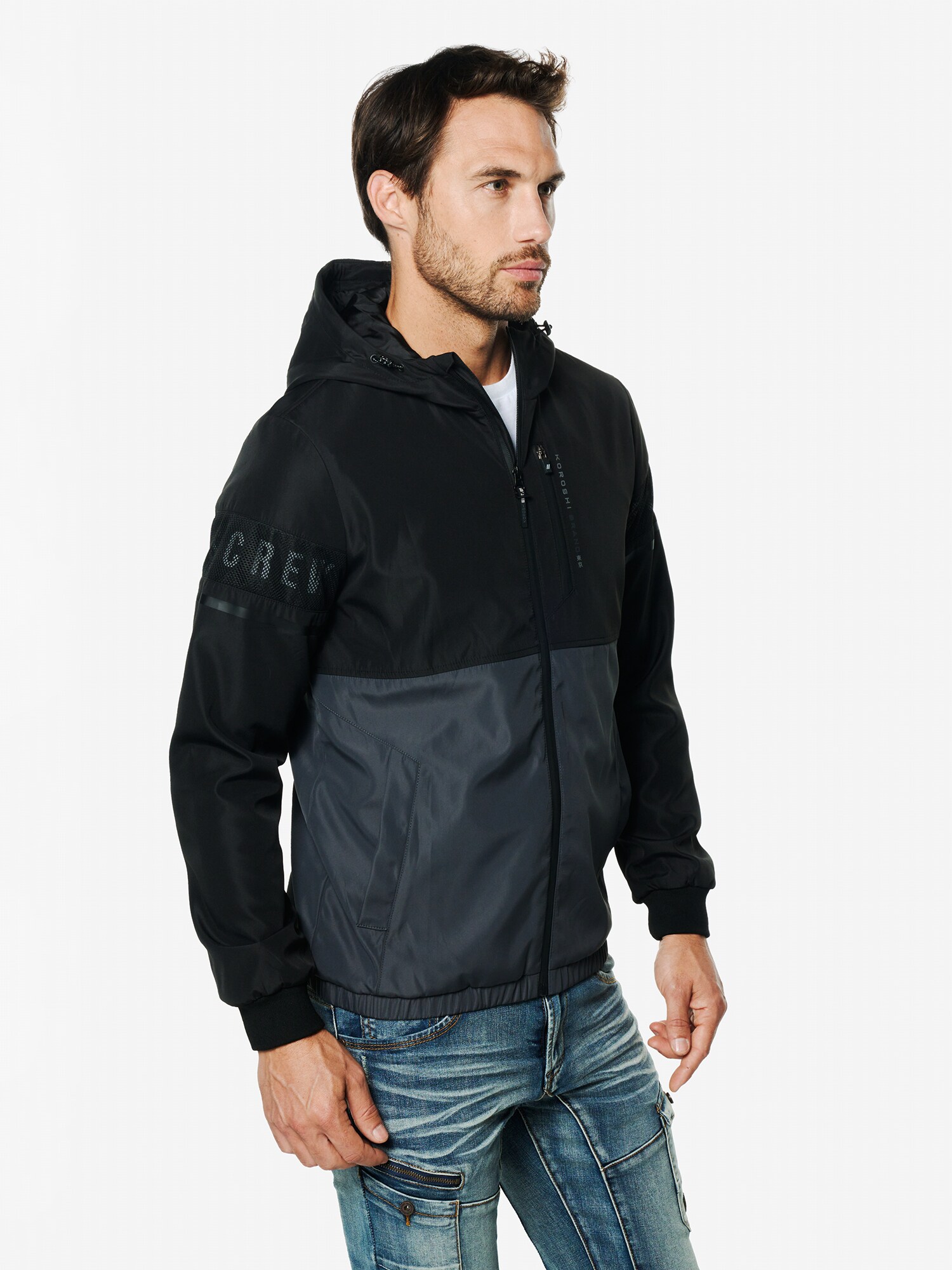 KOROSHI Geacă de primăvară-toamnă gri metalic / negru