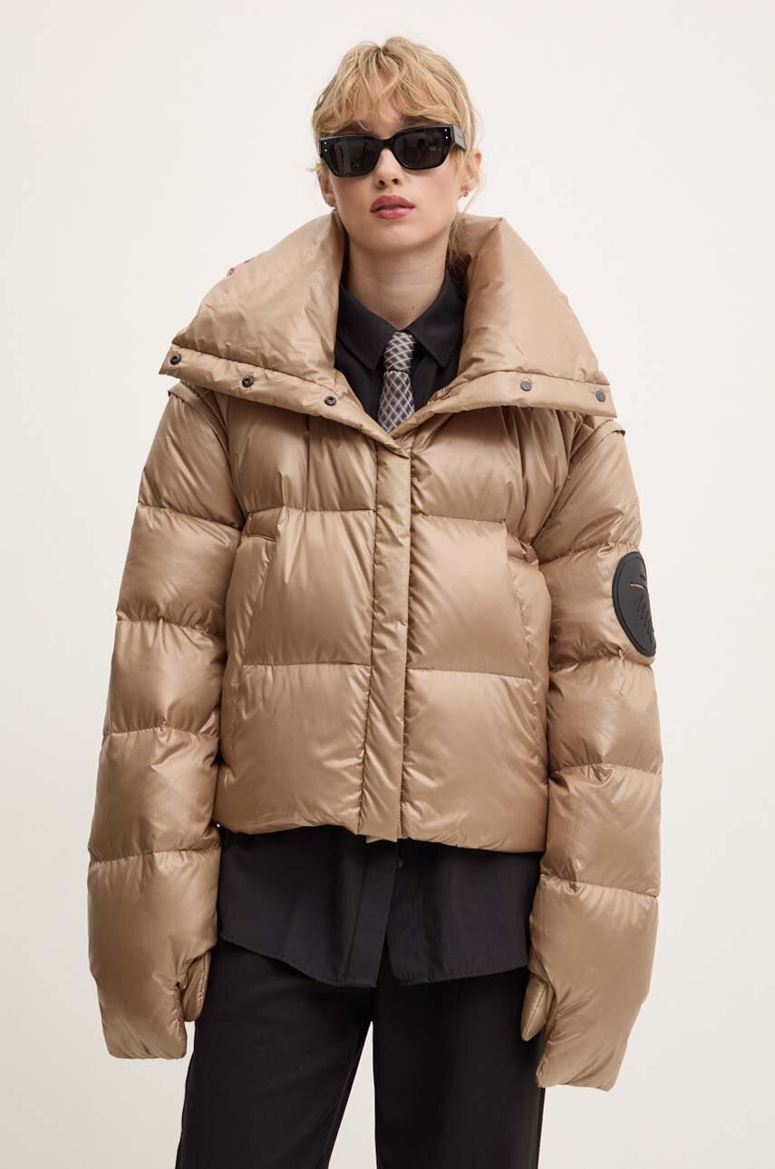 MMC STUDIO Geacă de puf femei bej, matlasată, izolație cu puf natural și pene, material uni, iarnă