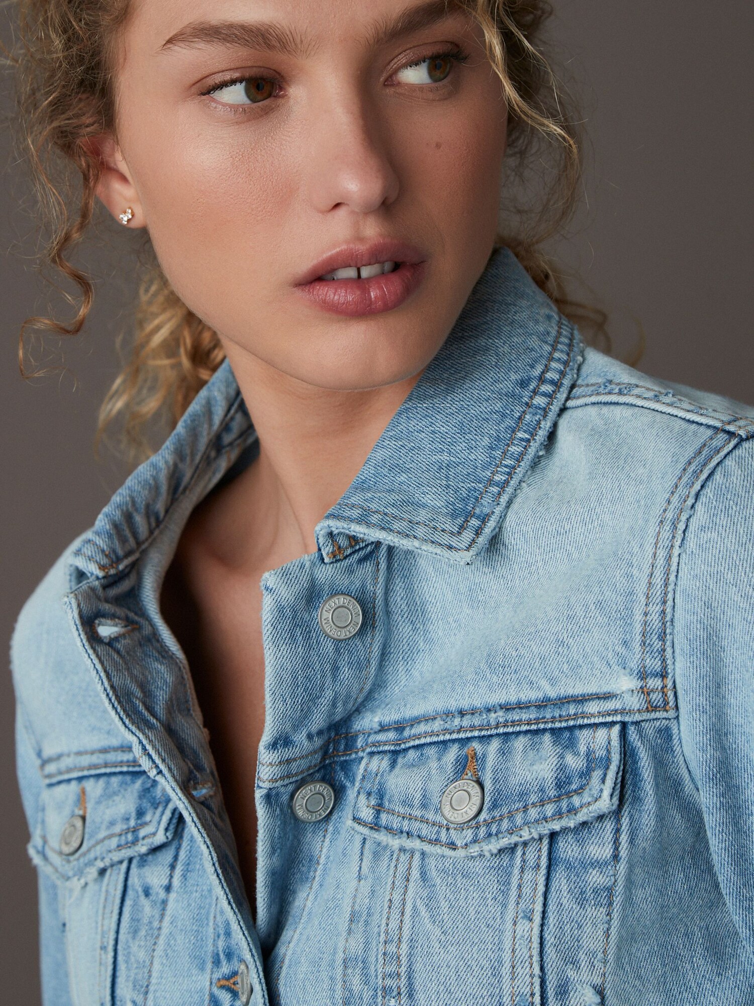Design: Buzunar la piept, Buzunare laterale deschise; Tip de închidere: Închidere cu nasturi; Căptușeală: Necăptușit; Material: Denim; Imprimeu: Monocrom; Detalii: Cusături contrastante, Efect prespălat; Croi: Croi ce avantajează silueta