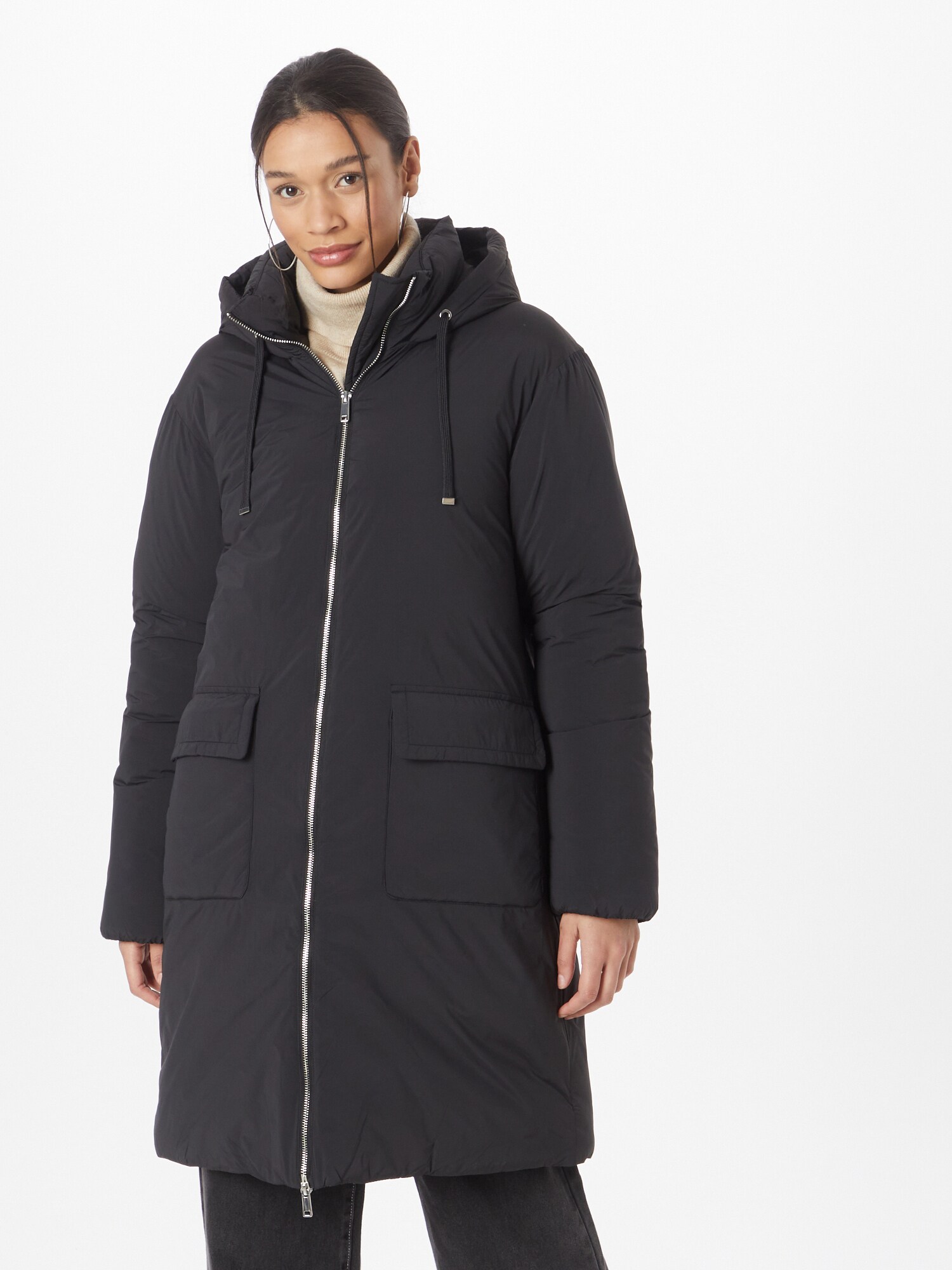 Design: Tiv drept, Guler tunică cu glugă, Glugă cu șiret, Fermoar cu două căi, Buzunare rabatabile; Tip de închidere: Fermoar; Căptușeală: Căptușit cald; Imprimeu: Monocrom; Detalii: Cusături ton în ton, Material neted; Croi: Croi normal; Lungime: Lungime normală