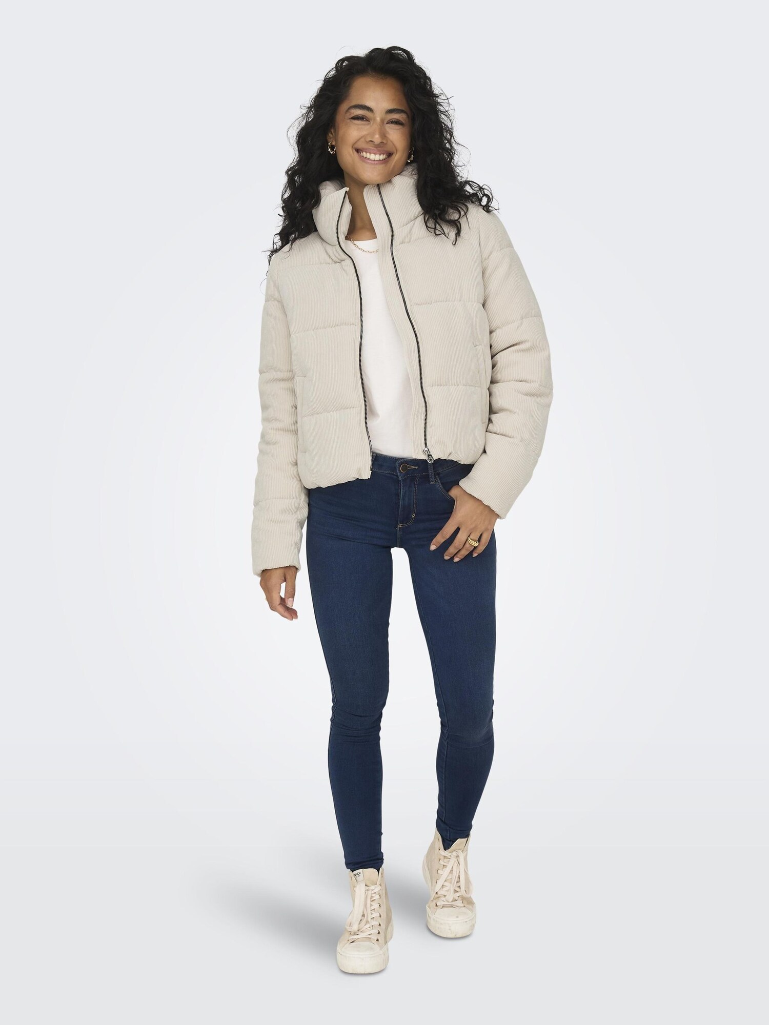 Design: Tiv drept, Guler tunică, Buzunare laterale deschise; Tip de închidere: Fermoar; Modelul gecii: Geacă matlasată; Căptușeală: Căptușit parțial; Material: Catifea reiată; Imprimeu: Monocrom; Detalii: Suprafață structurată, Cusături ton în ton, Material rigid; Croi: Croi normal