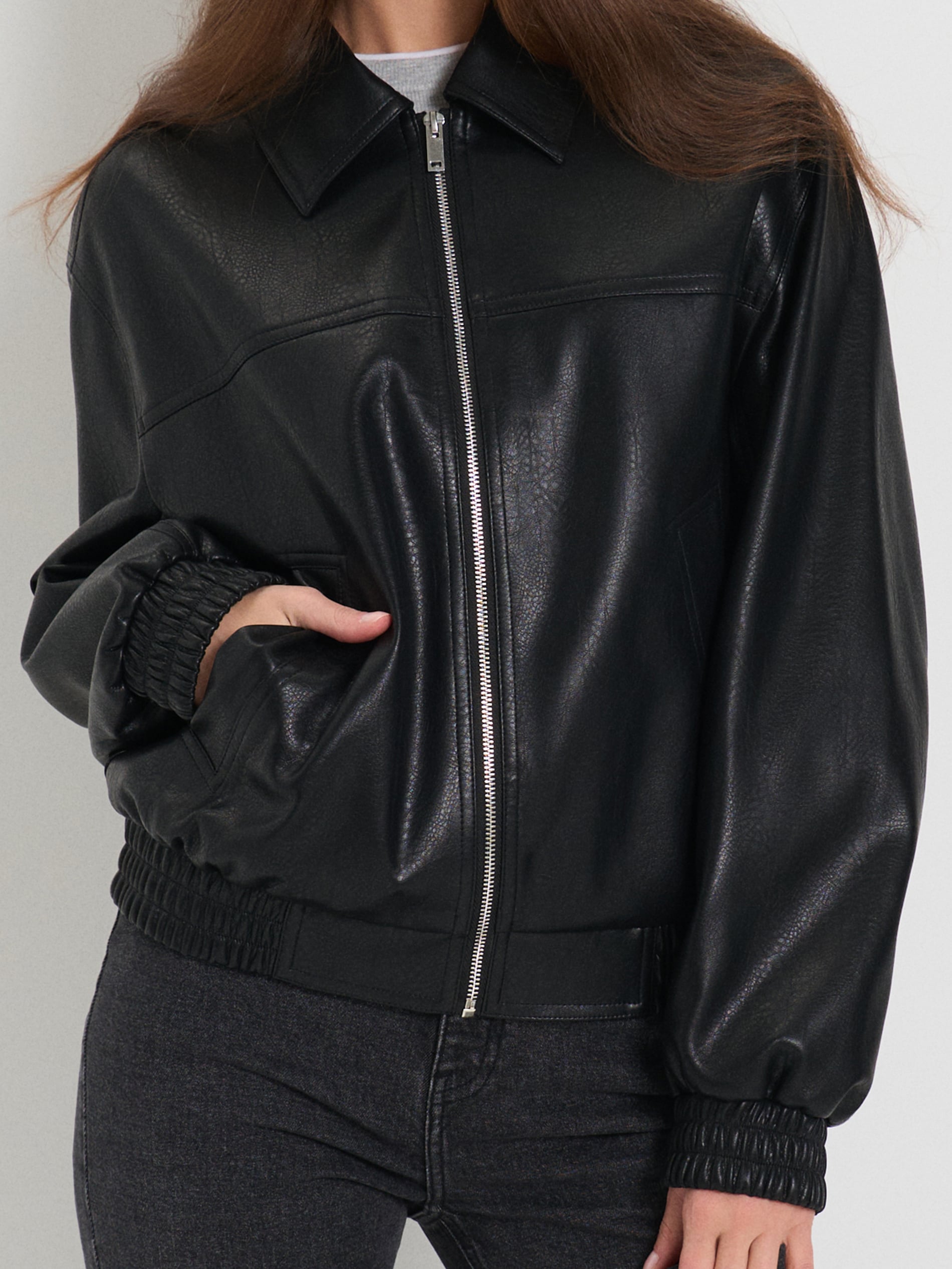 Sinsay - Geacă bomber din piele ecologică - negru