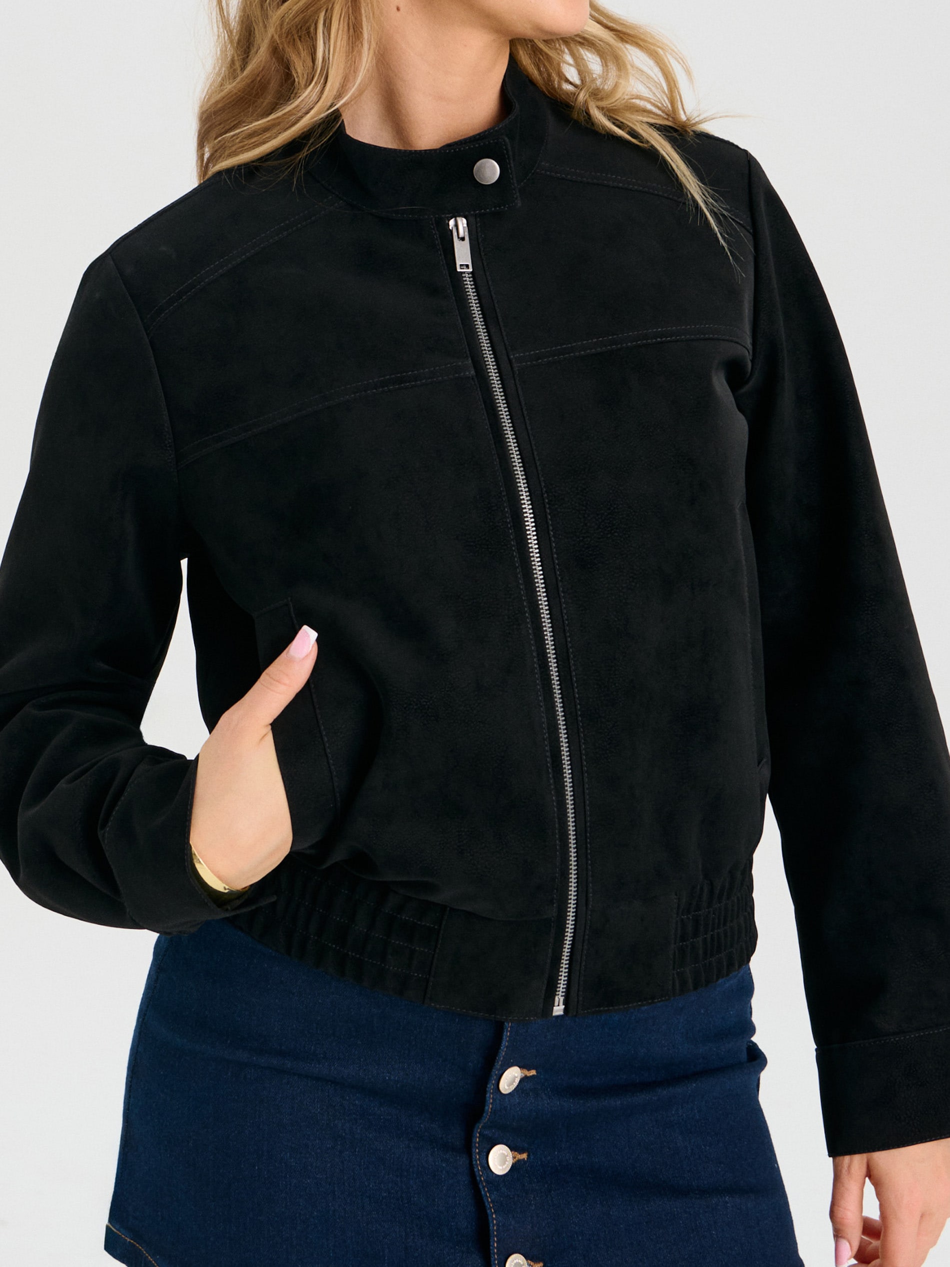 Sinsay - Geacă din imitație de piele întoarsă cu guler tip stand și capse - negru -