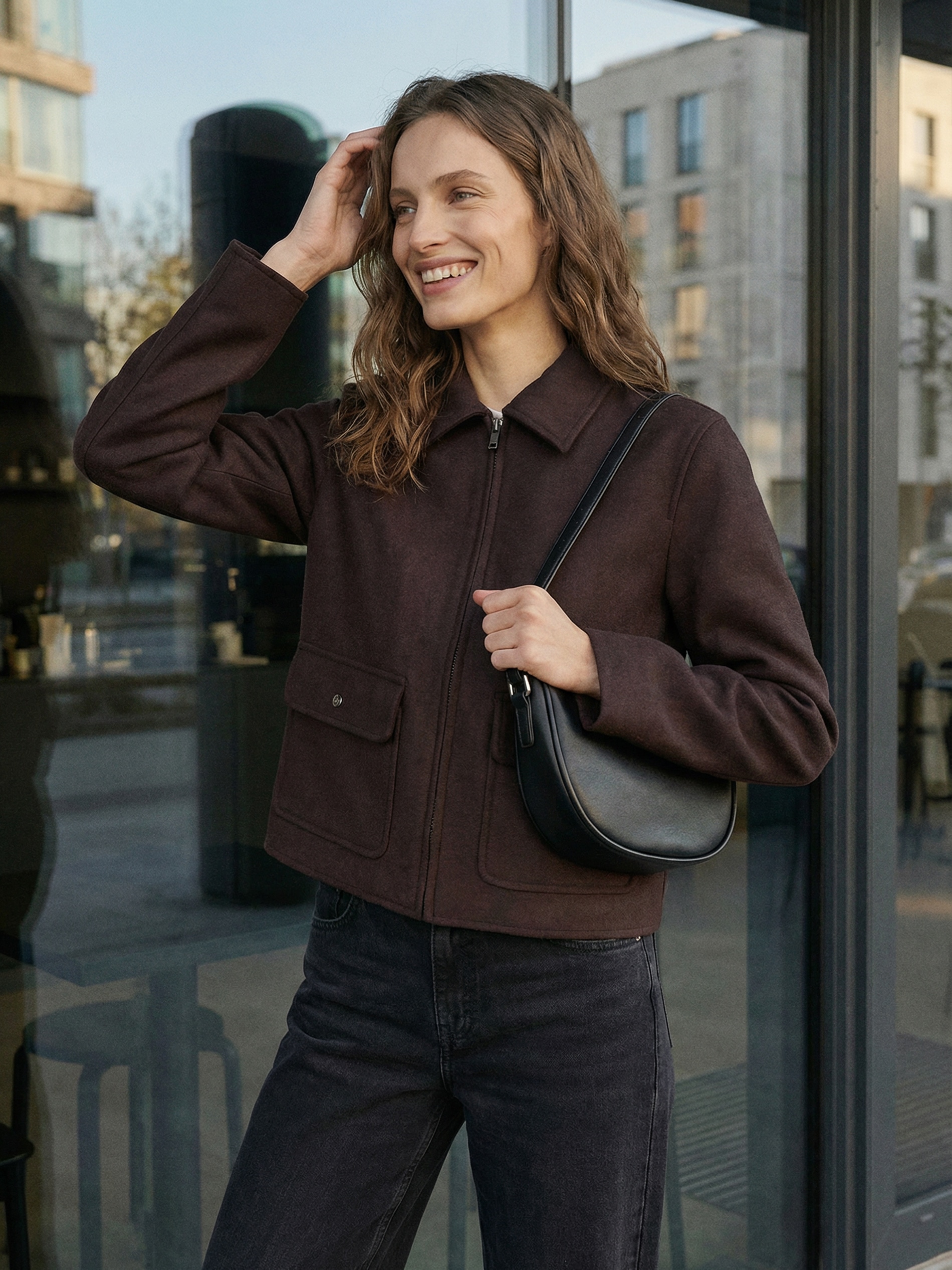 Sinsay - Jachetă scurtă tip shacket - maro-închis
