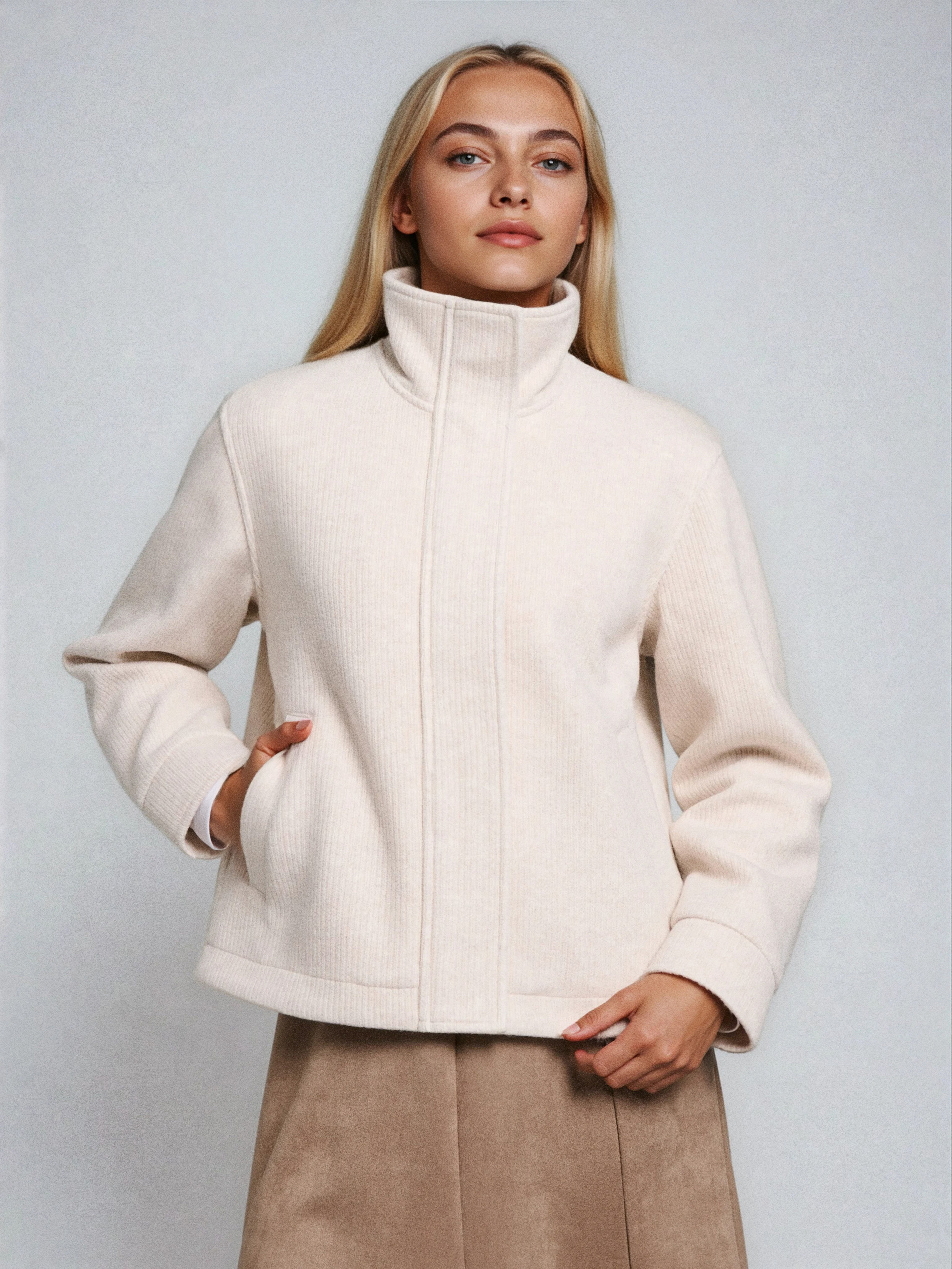Sinsay - Jachetă tricotată cu guler înalt - nude
