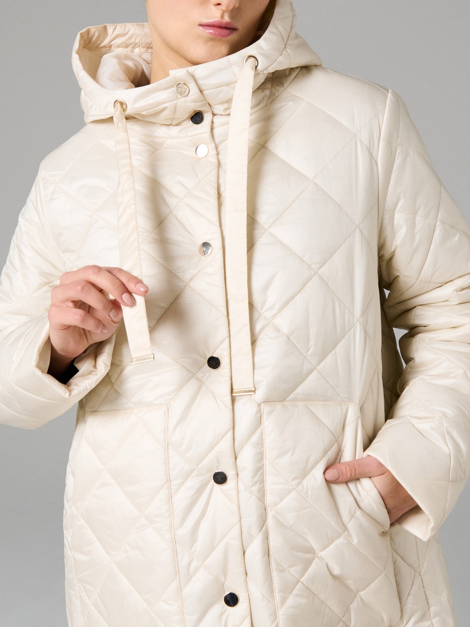 Sinsay - Palton capitonat cu glugă reglabilă - crem