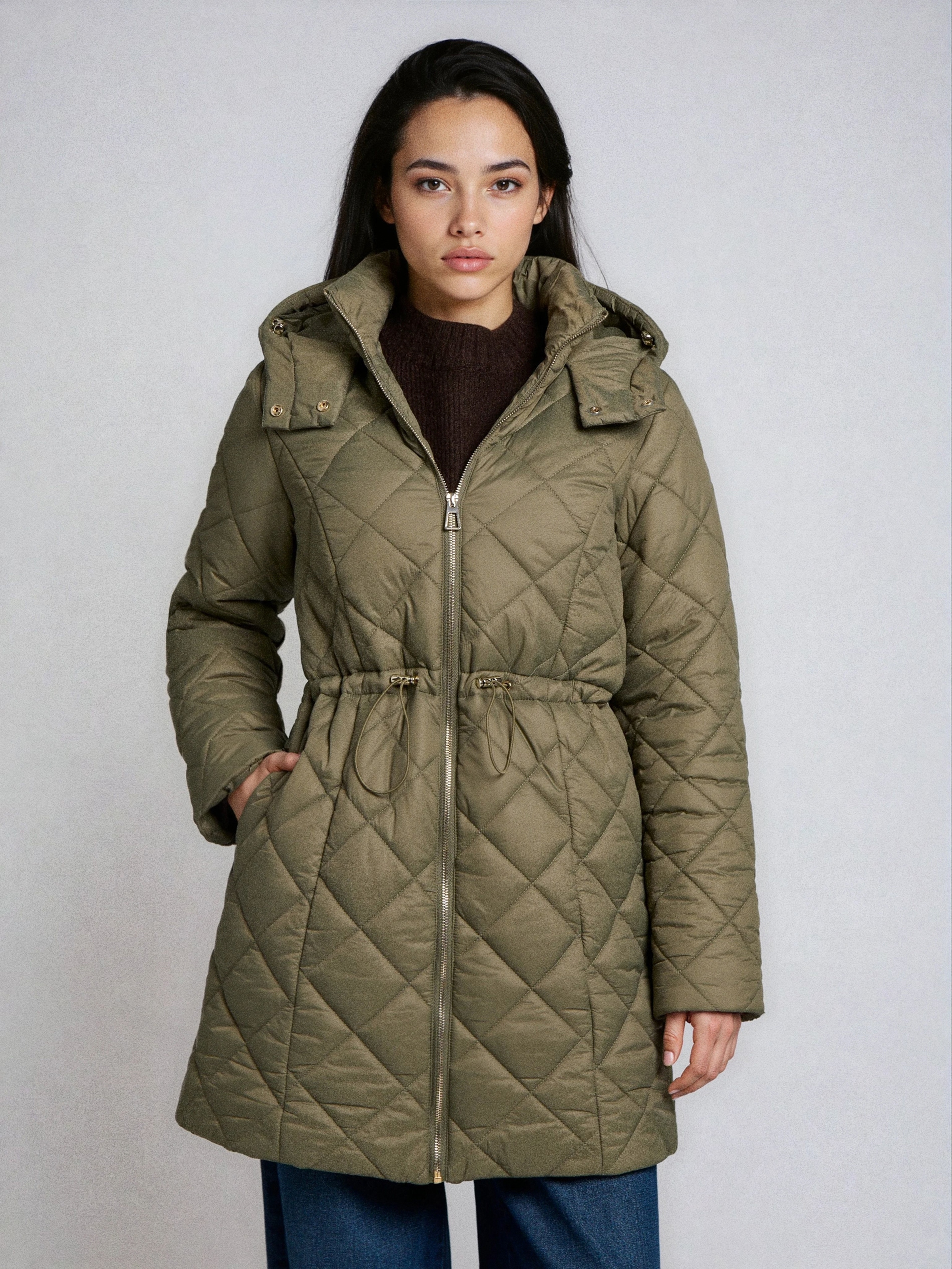 Sinsay - Palton matlasat cu glugă - verde