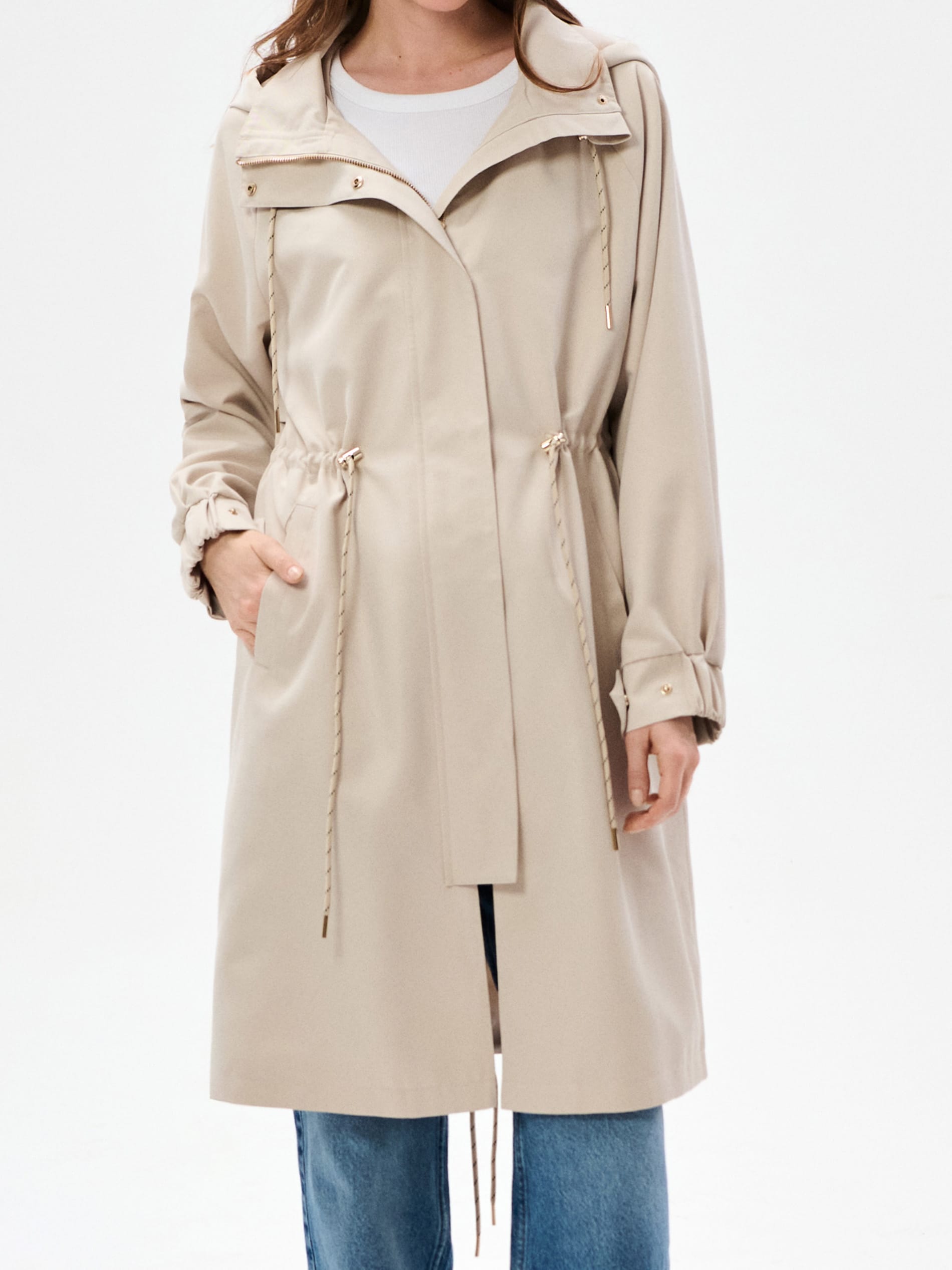 Sinsay - Parka lungă cu glugă - crem