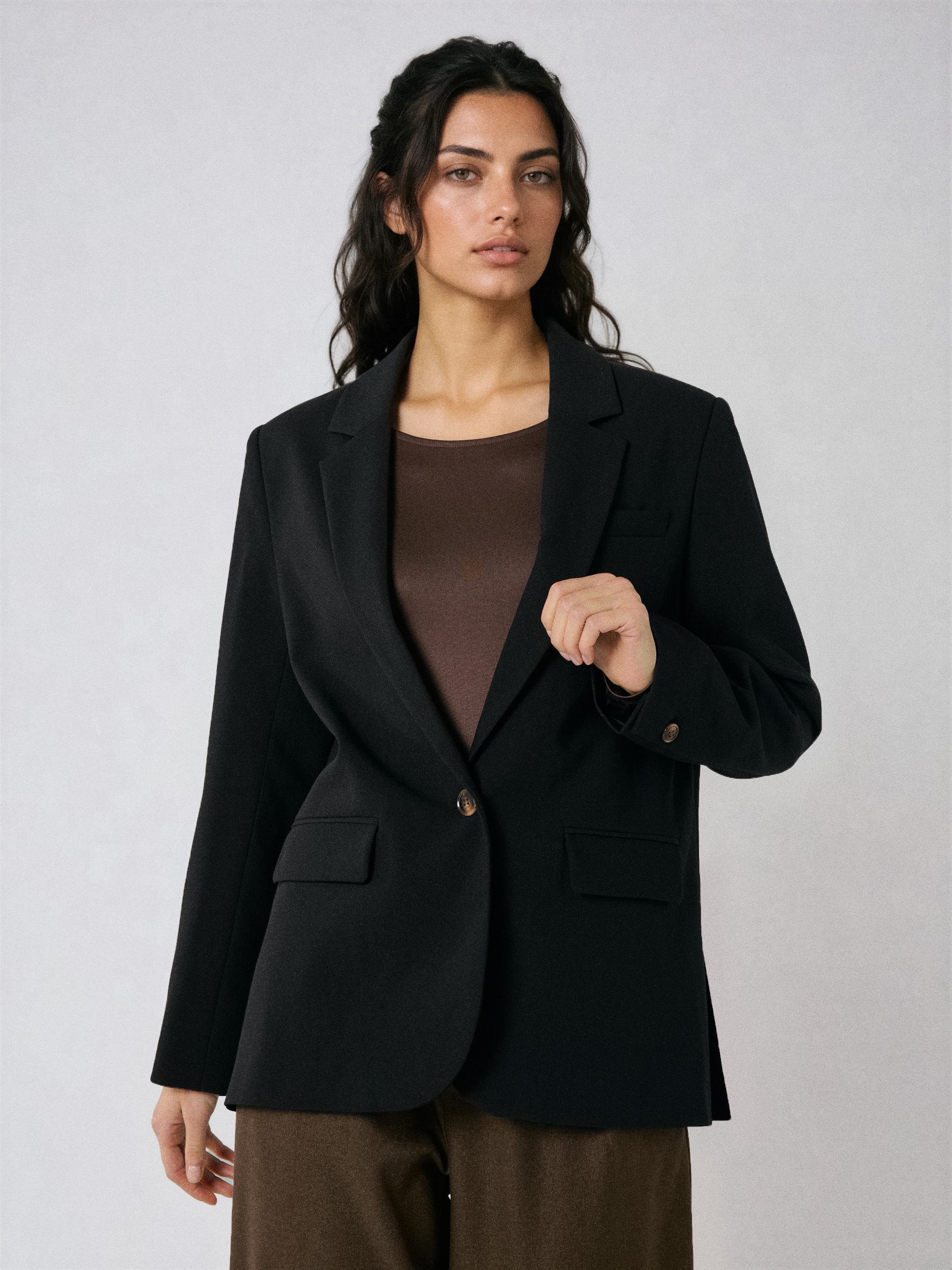 Sinsay - Sacou clasic simplu, într-o culoare solidă, cu amestec de vâscoză - negru -