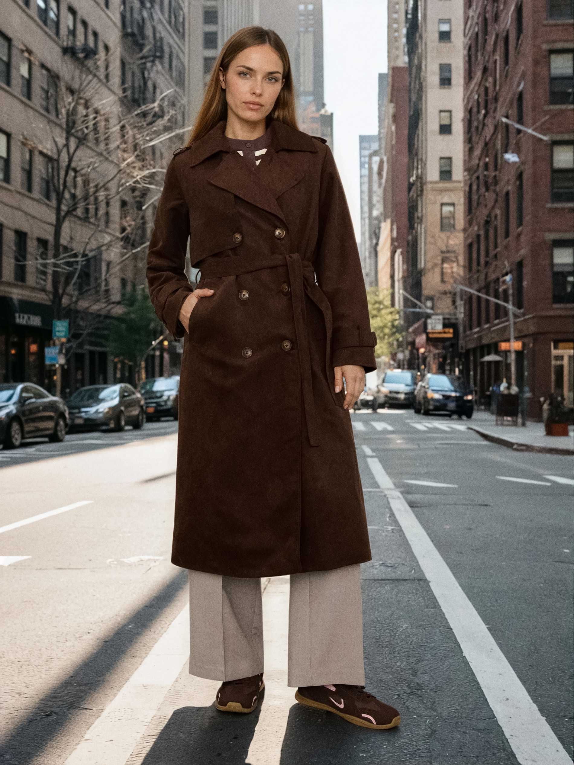 Sinsay - Trenci din imitație de piele întoarsă cu curea - maro -