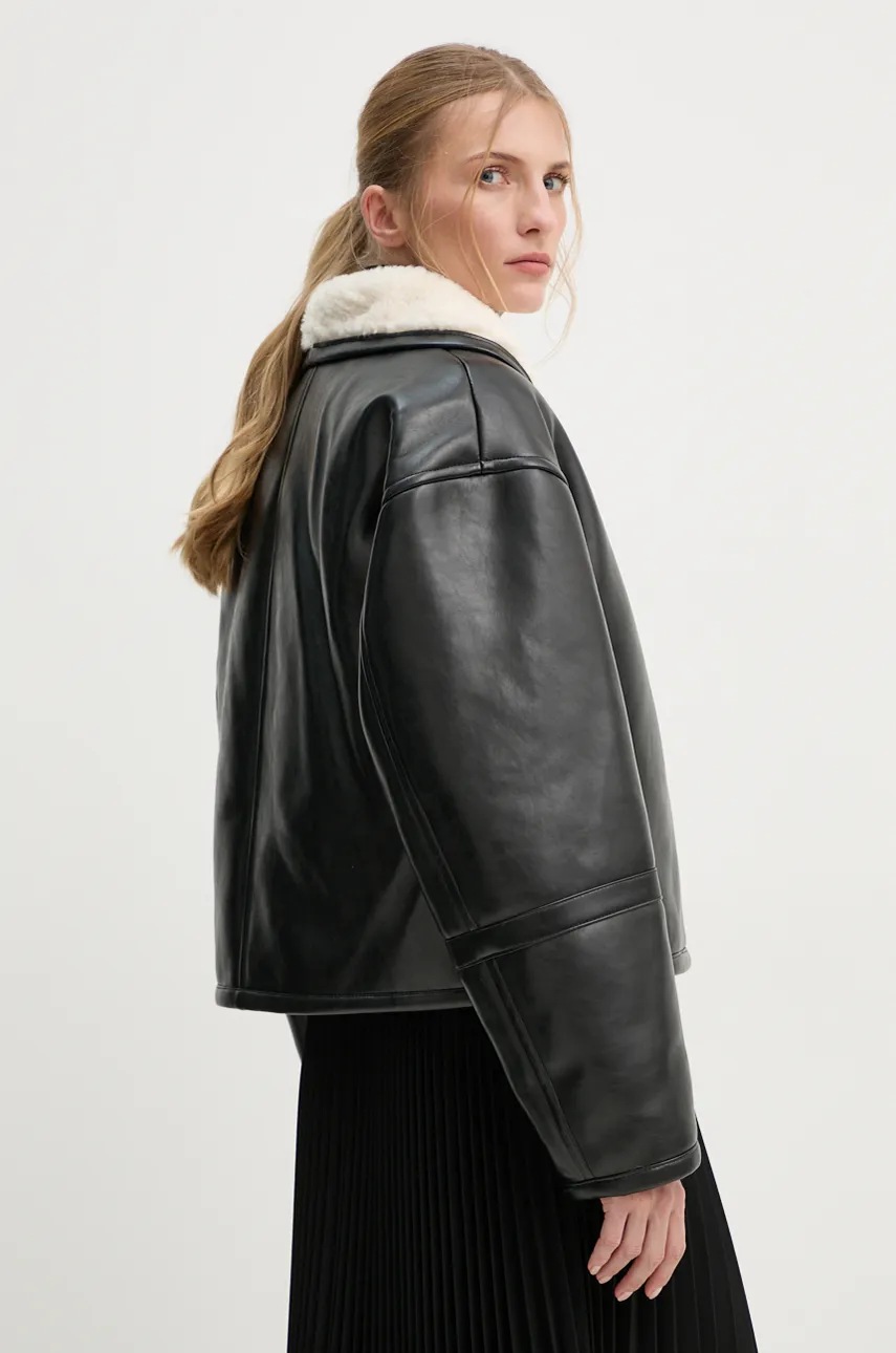 Stand Studio Geacă Leonora pentru femei, negru, oversize, mărime 36, fermoar, 2 buzunare, căptușită