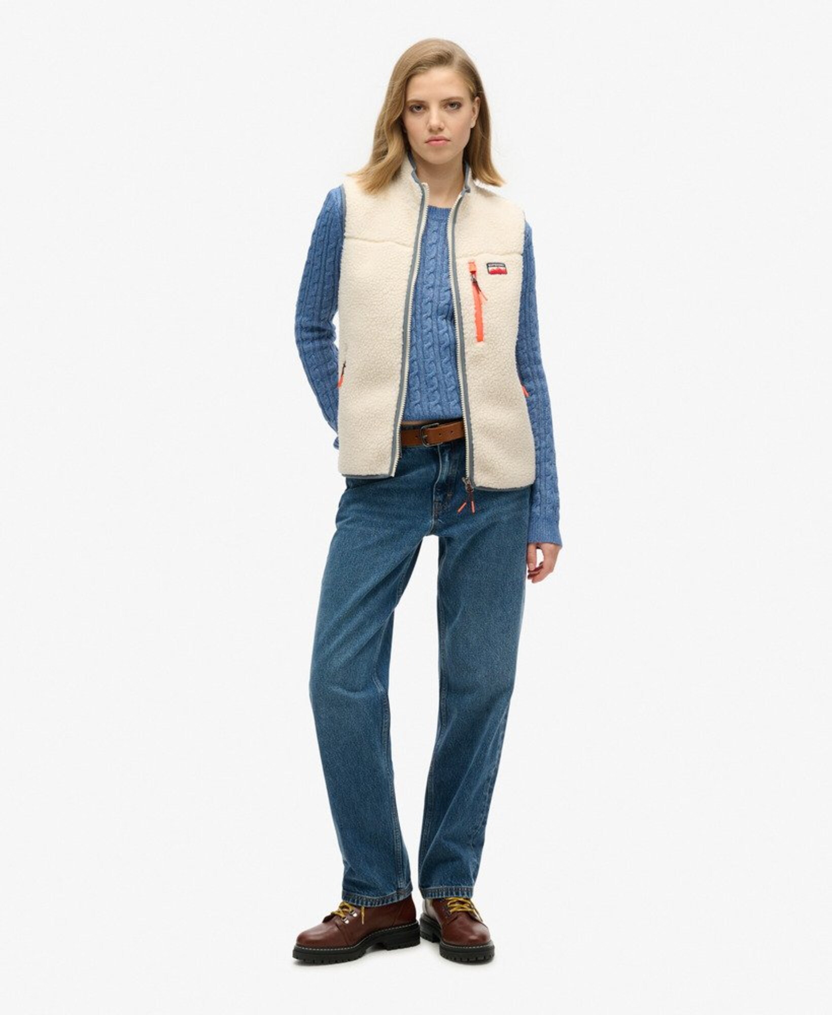 Descoperă vestimentația perfectă pentru stilul tău dinamic cu vesta Superdry crem și portocalie. Această piesă unică, cu un design elegant și sofisticat, este ideală pentru a-ți completa outfit-ul, indiferent de ocazie. Cu un tiv rafinat și buzunare laterale cu fermoar, îți oferă nu doar o estetică plăcută, ci și o funcționalitate deosebită, ideală pentru a-ți păstra efectele personale în siguranță. Buzunarul de la piept adaugă un accent modern, iar materialul din fleece pe care este realizată, asigură o senzație plăcută pe piele, fiind delicat și confortabil. Croiul mulat evidențiază forma corpului, conferindu-ți un aer sofisticat și îngrijit. Fără mâneci, această vestă îți permite libertate de mișcare și se dovedește versatilă pentru toate activitățile tale. Îmbogățește-ți garderoba cu această vestă care îmbină stilul contemporan cu confortul, și fi mereu pregătit să atragi toate privirile! Achiziționează-ți vesta Superdry astăzi și redefinește-ți stilul!